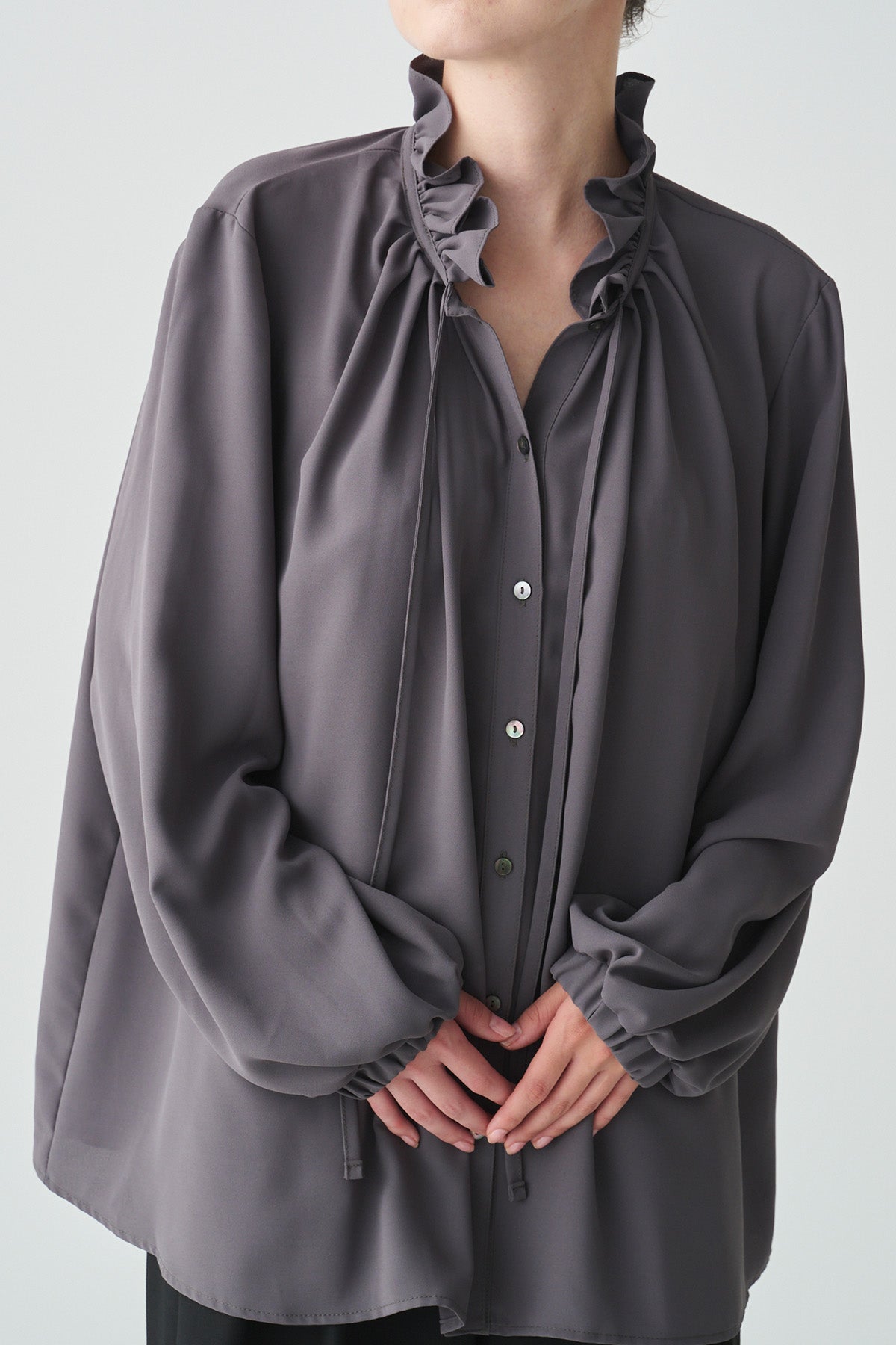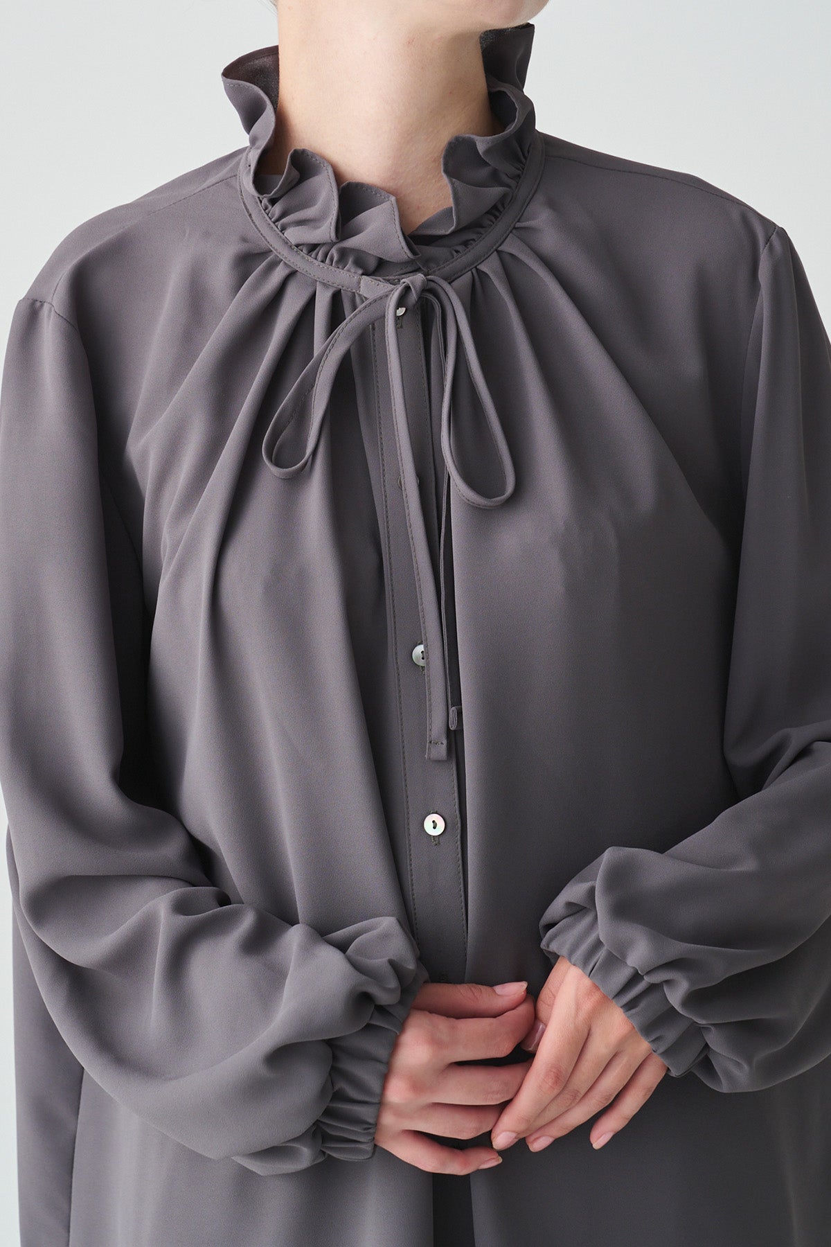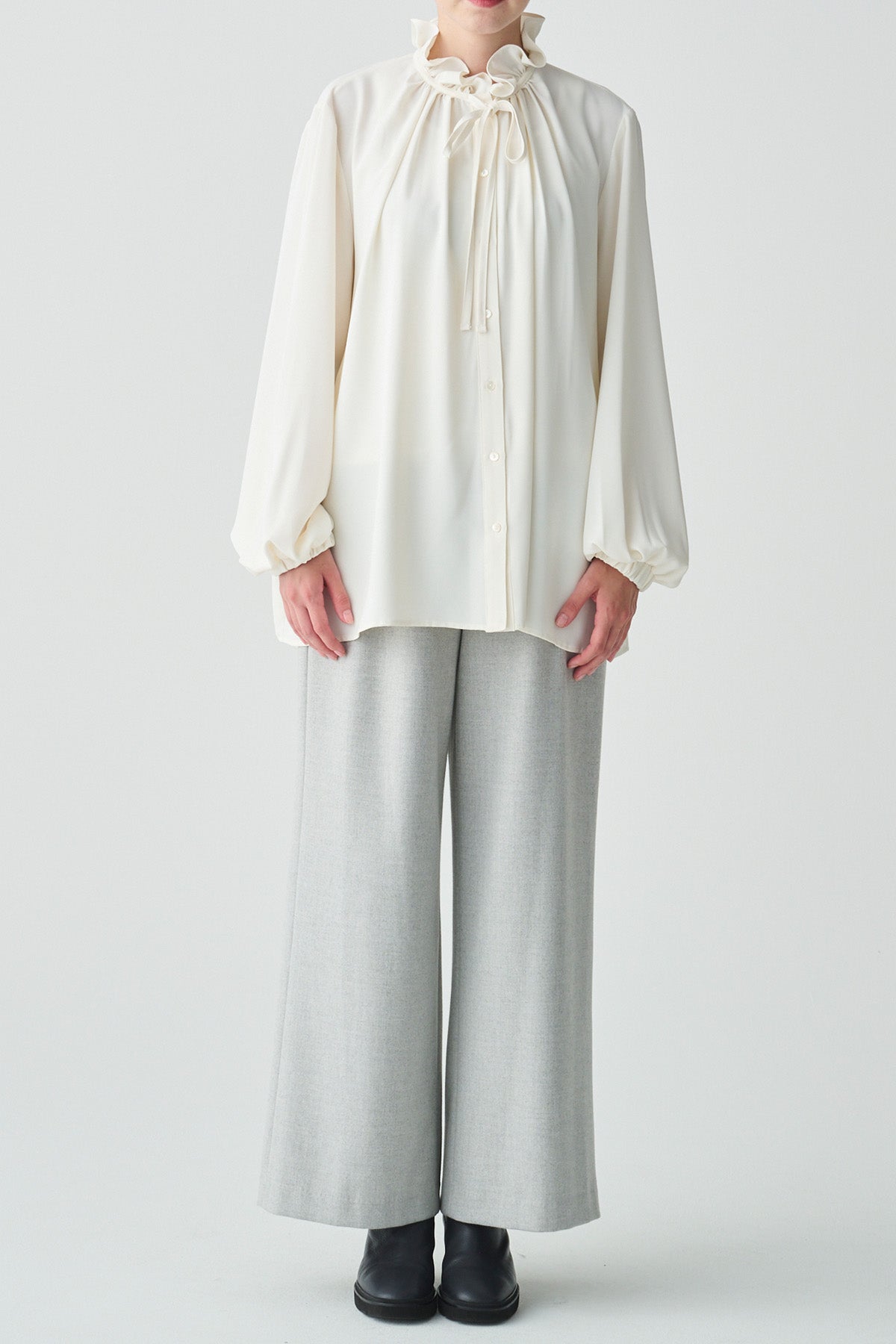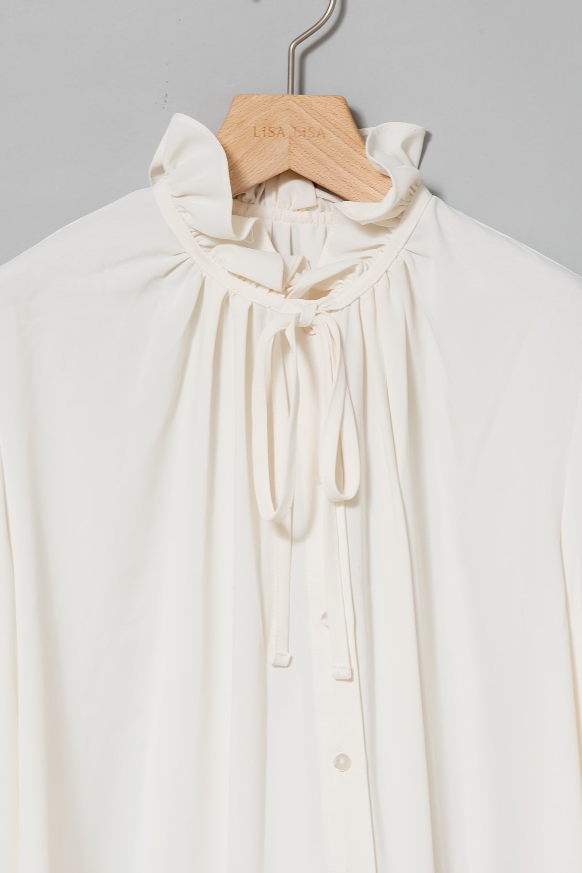フリルの襟とリボンがクラシカルなイメージのブラウス