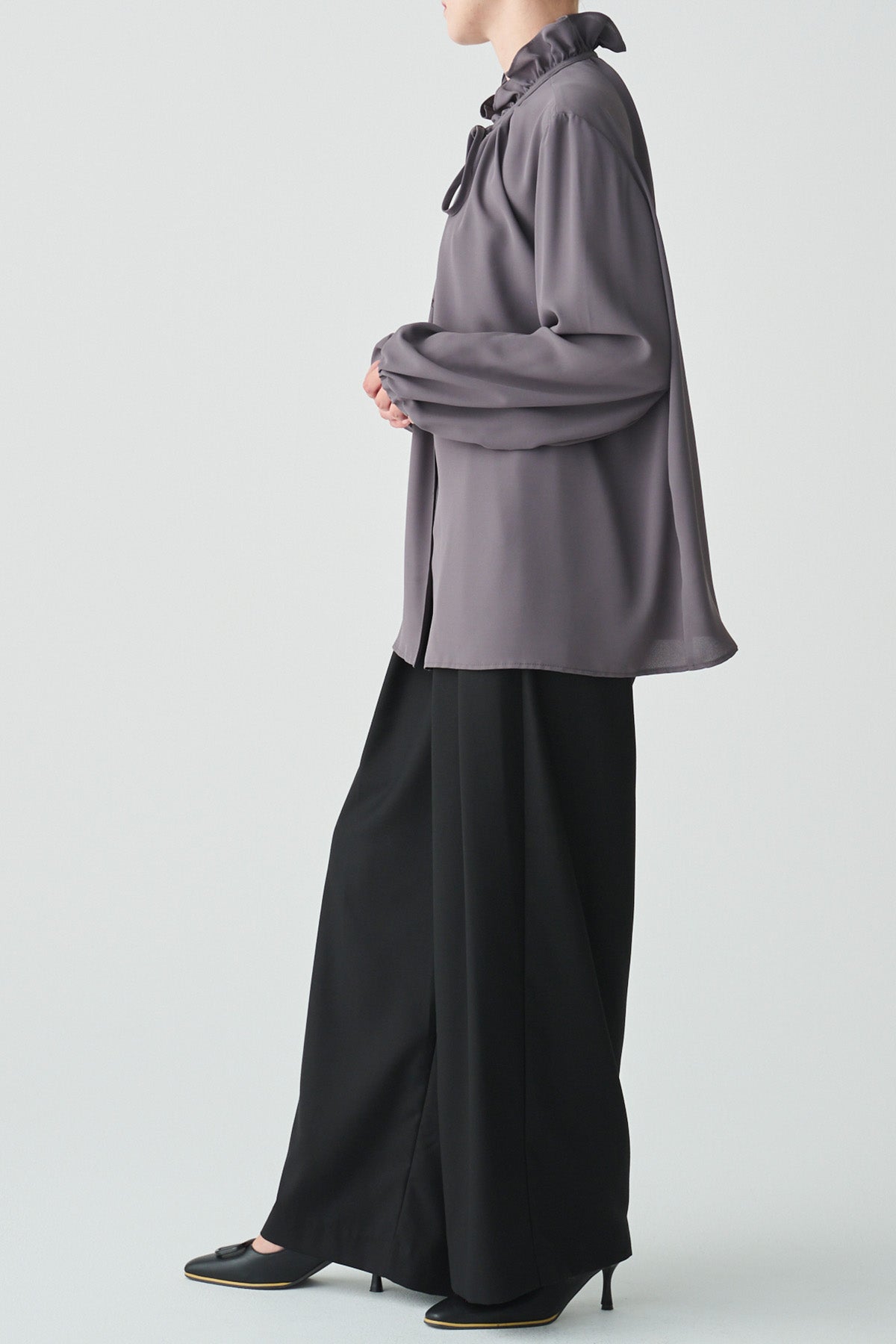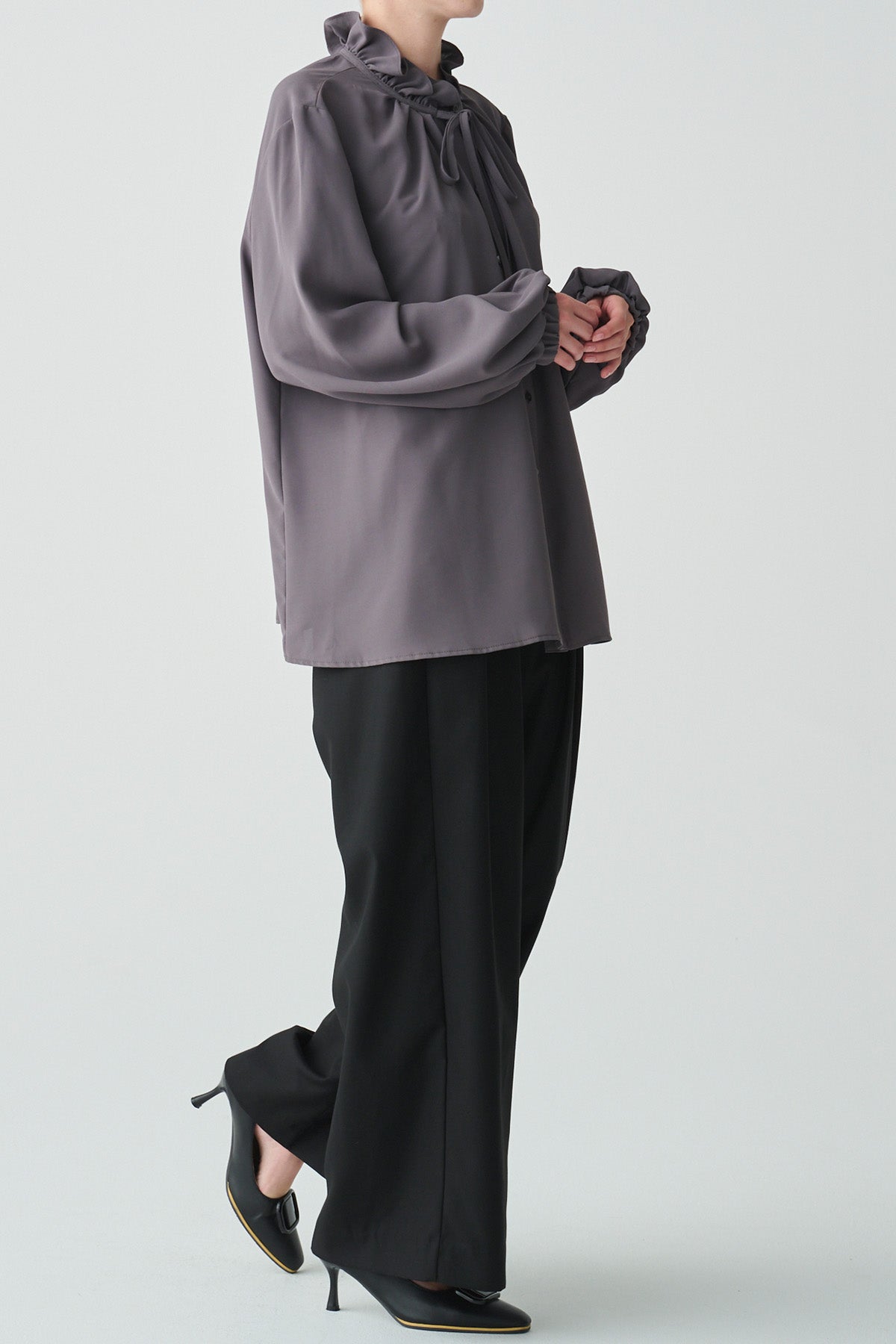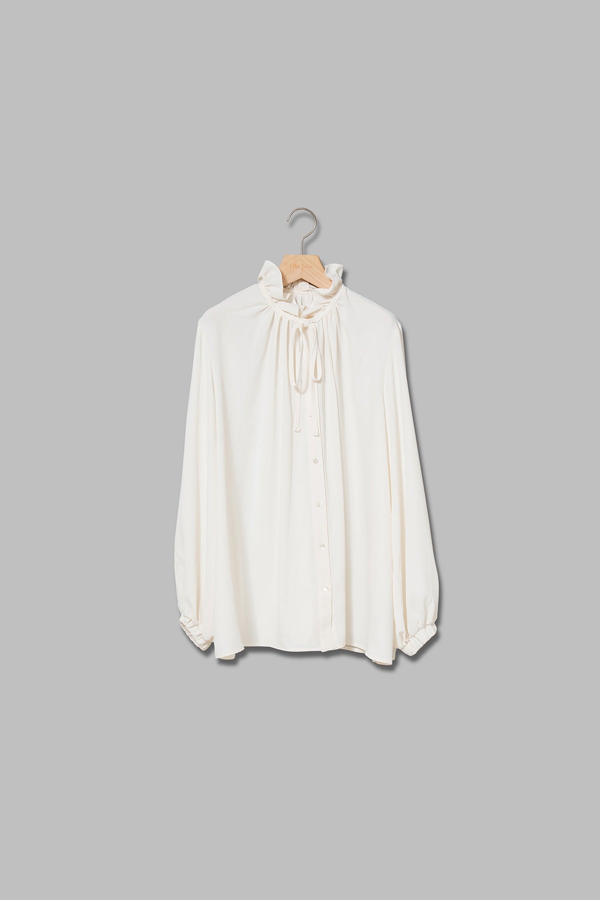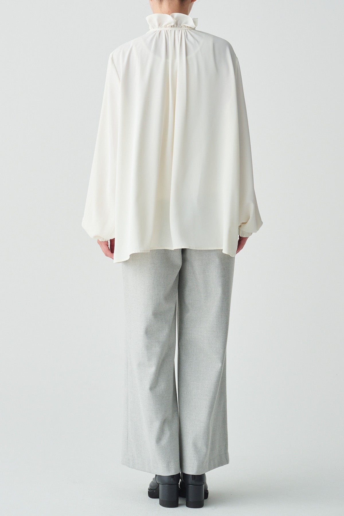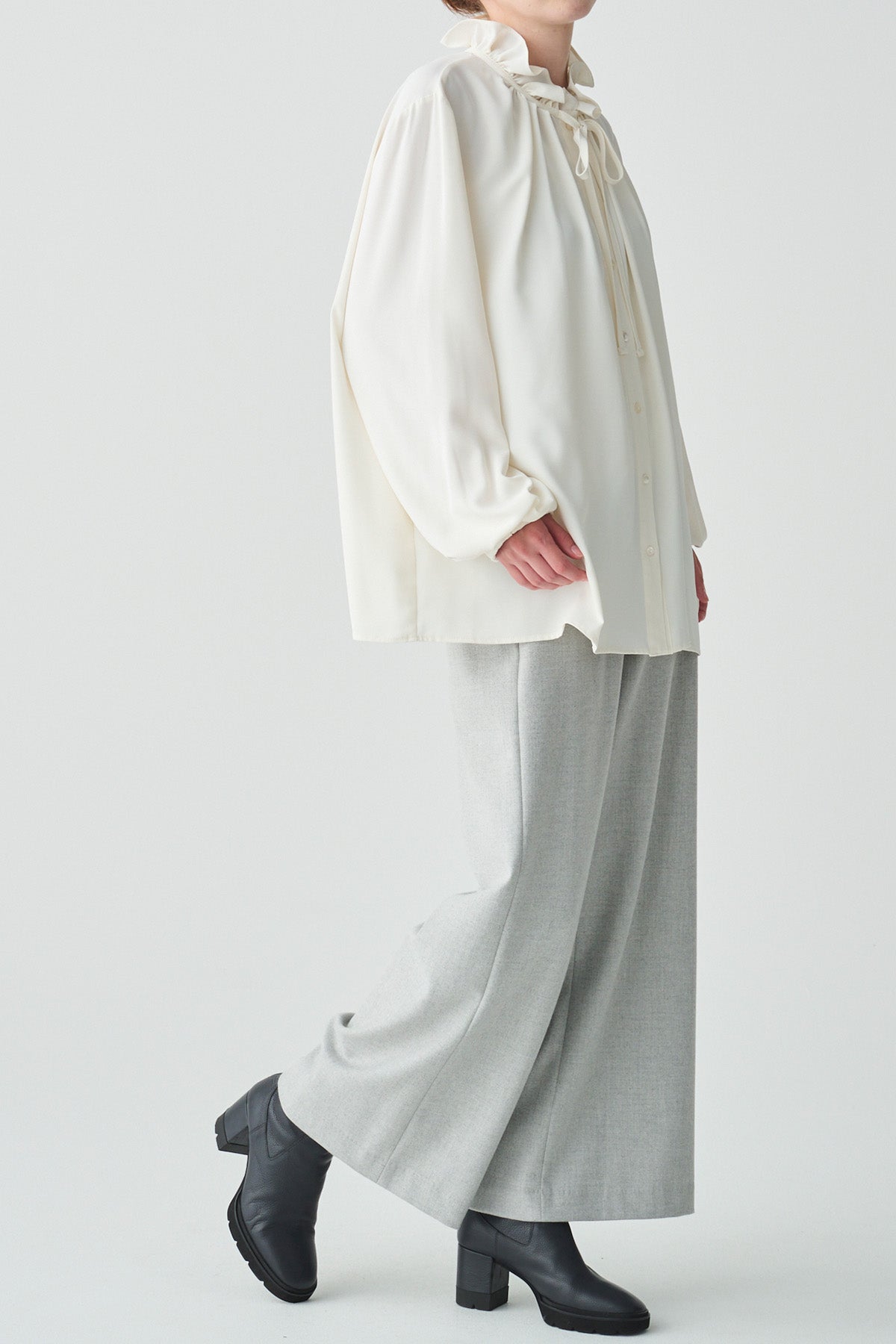 フリルの襟とリボンがクラシカルなイメージのブラウス