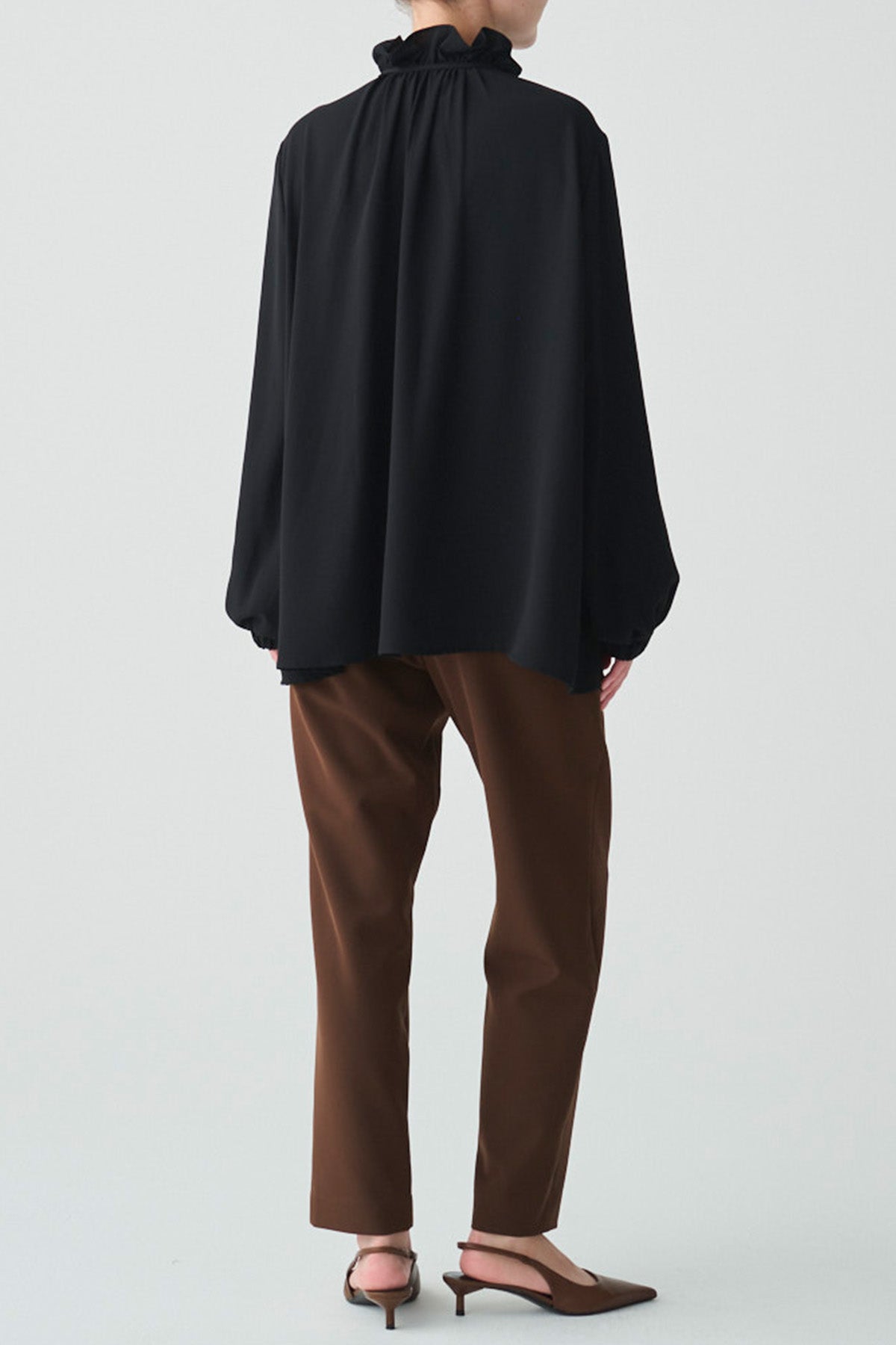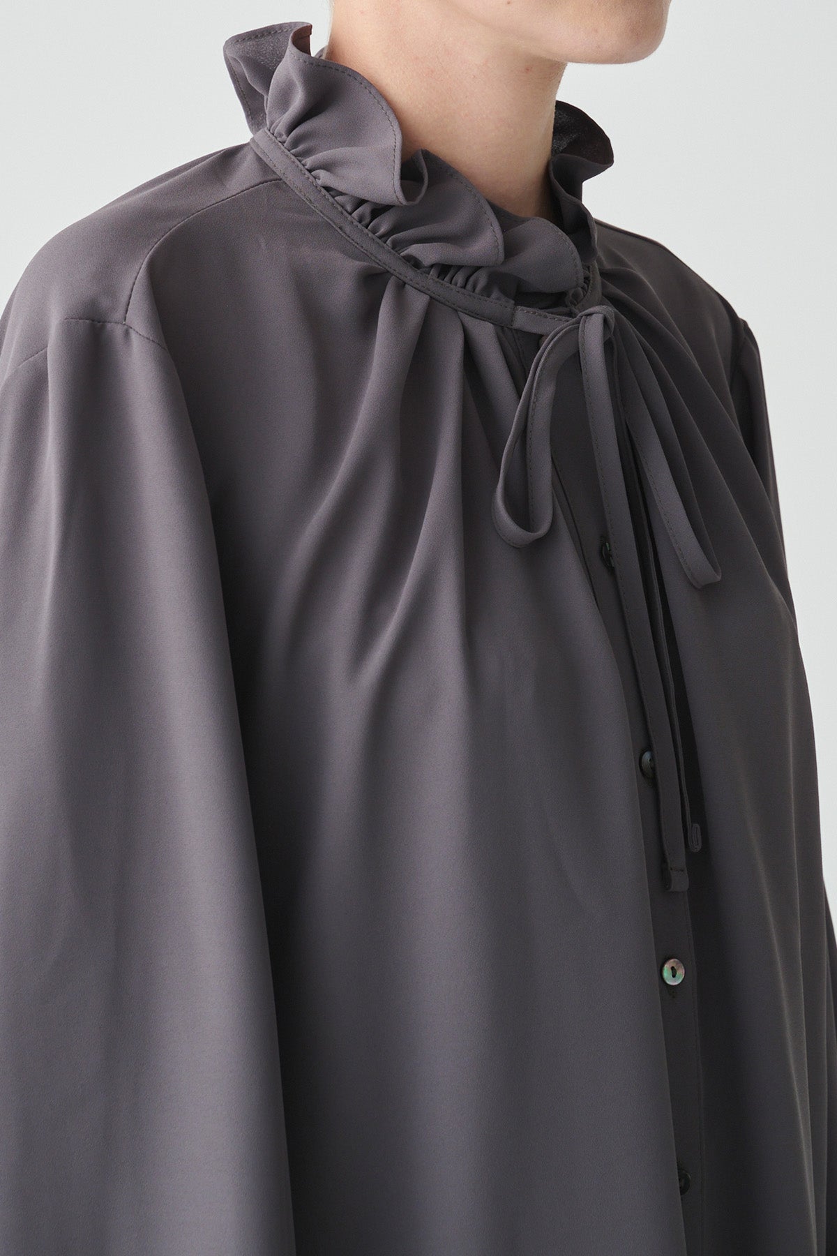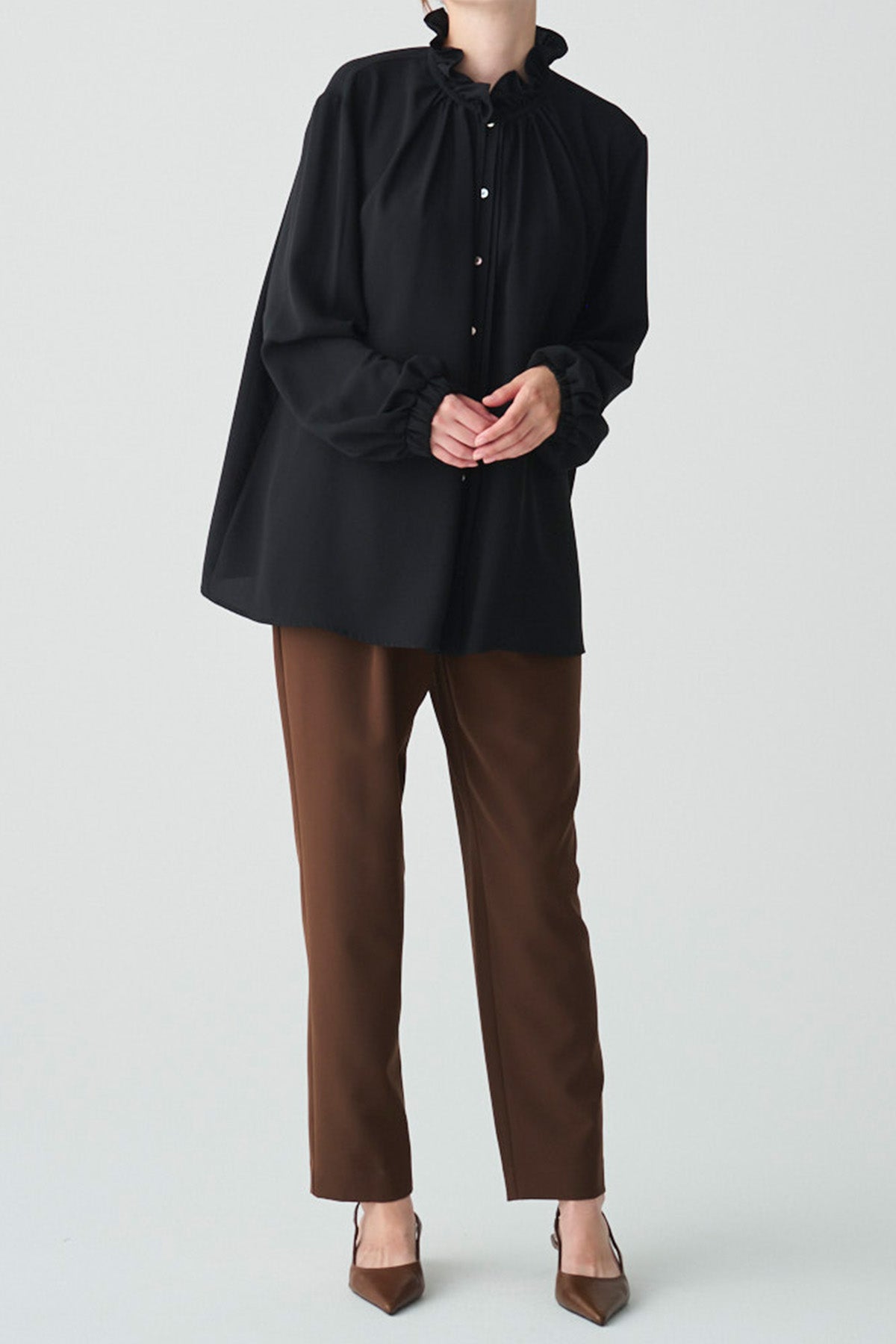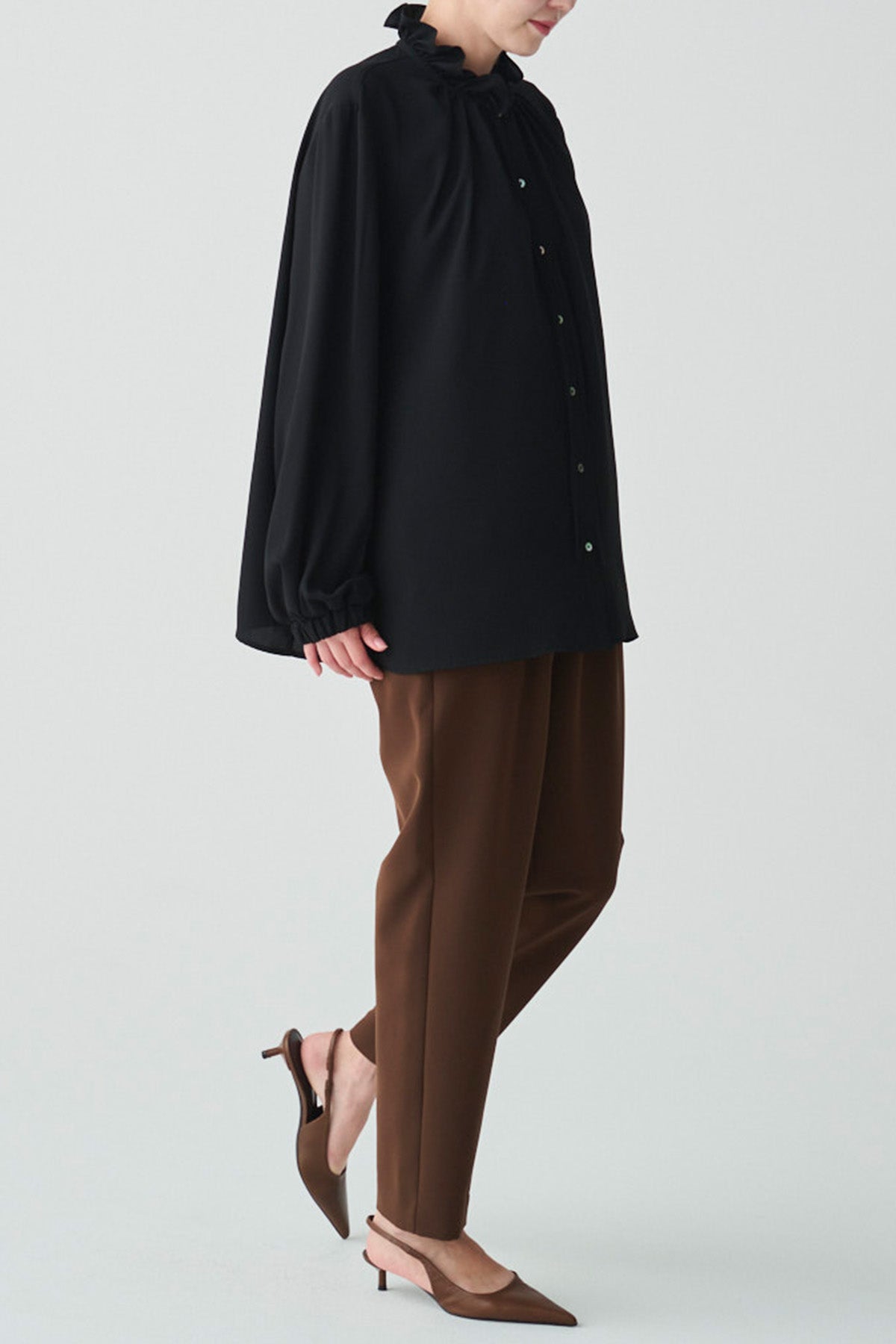 フリルの襟とリボンがクラシカルなイメージのブラウス