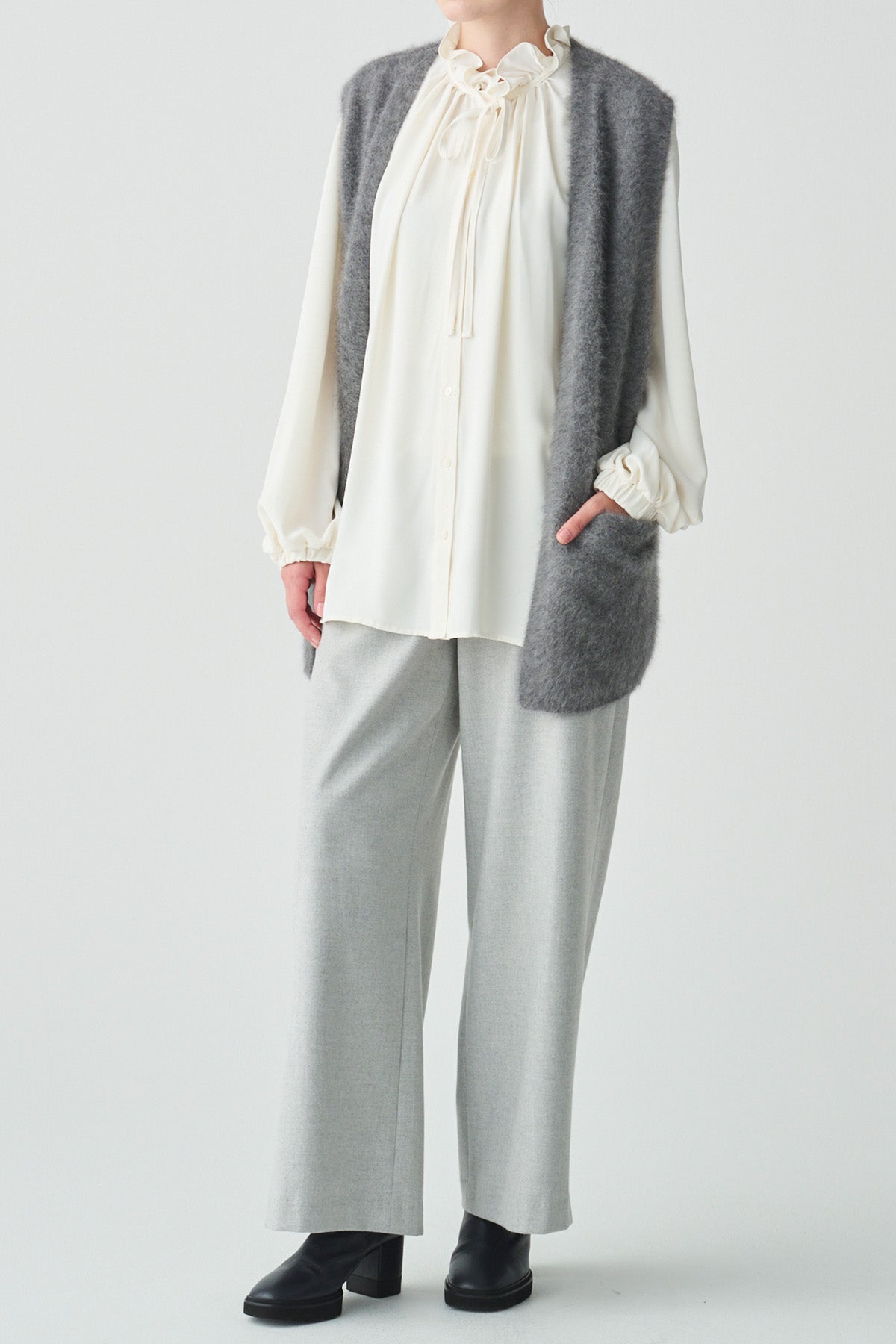 ベストやジレ、カーディガン、ジャケットなど羽織物とも好相性