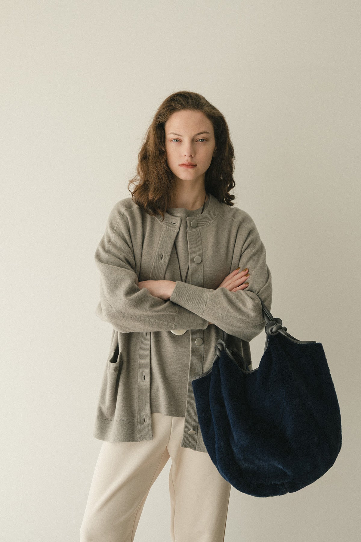 ミニマルなデザインにラウンドヘムを加え、リラックス感の中に女性らしさを演出