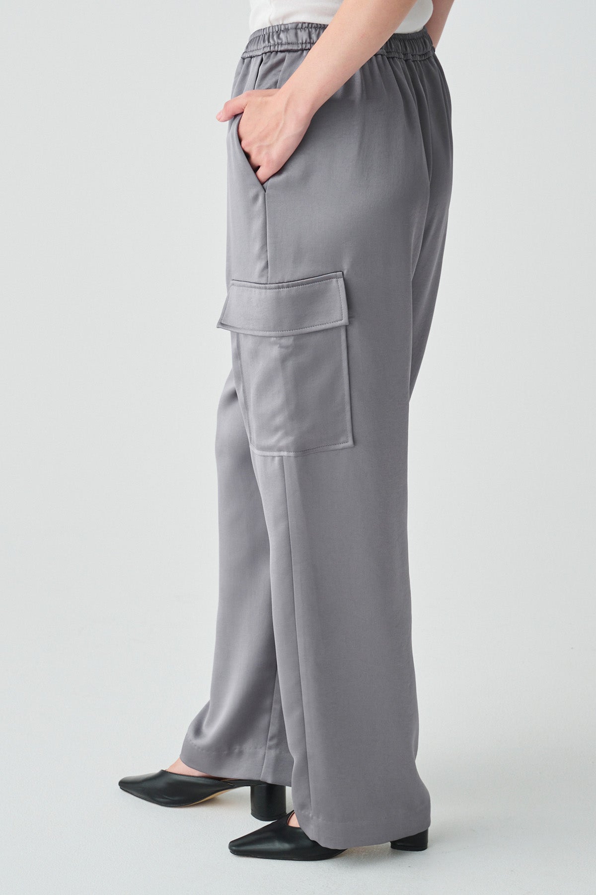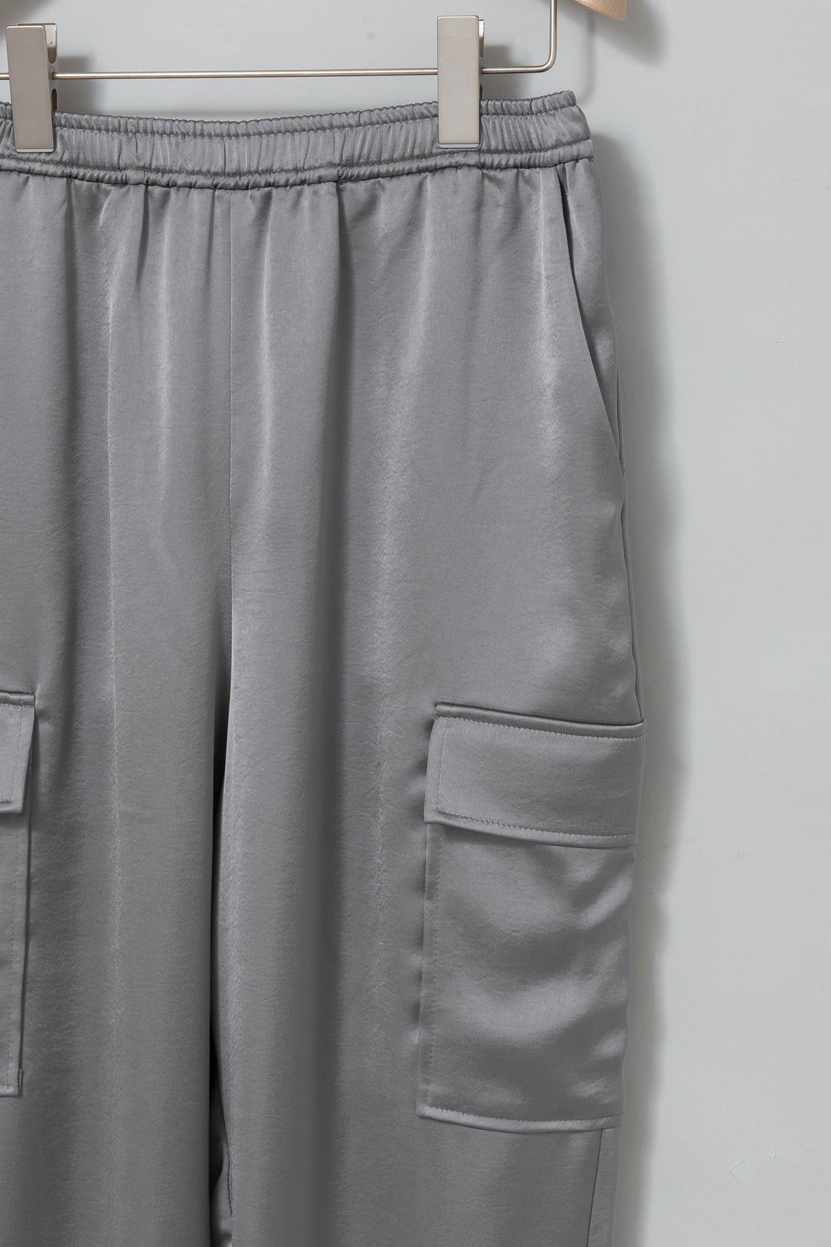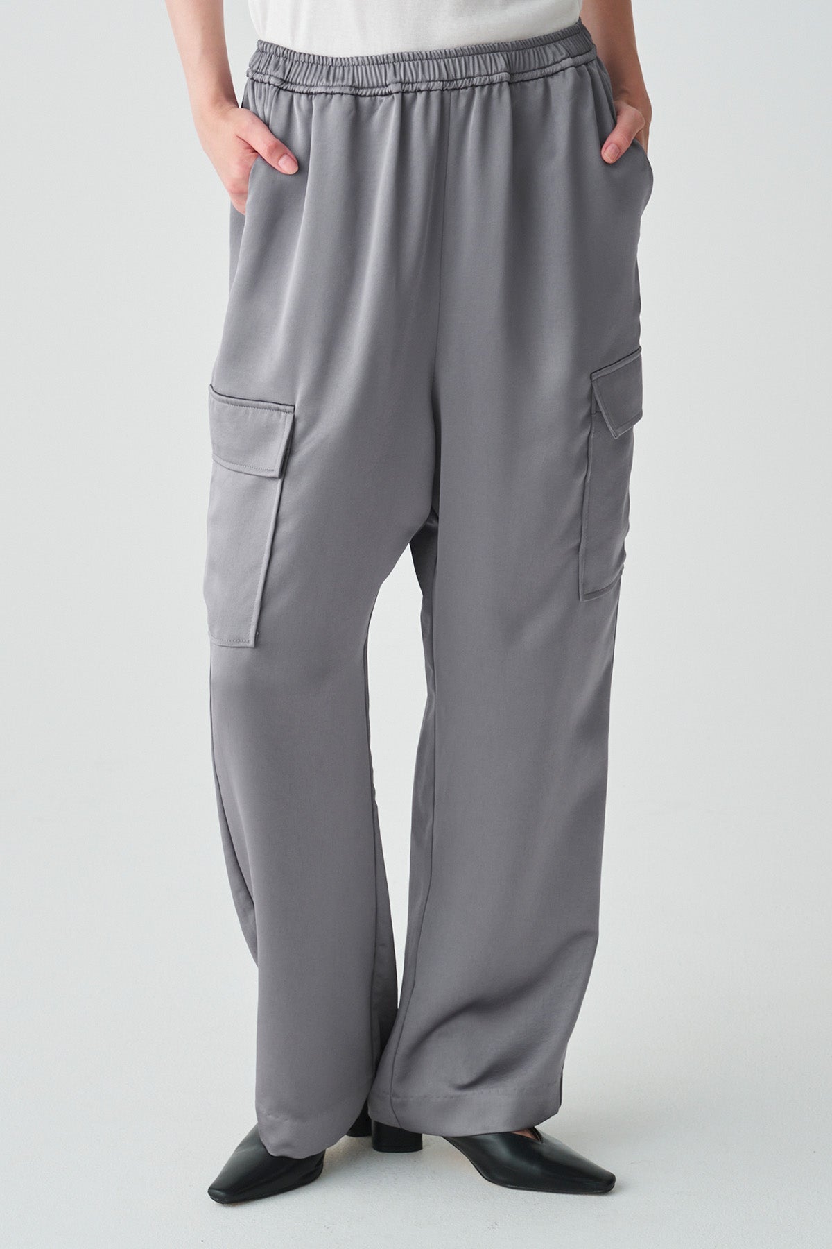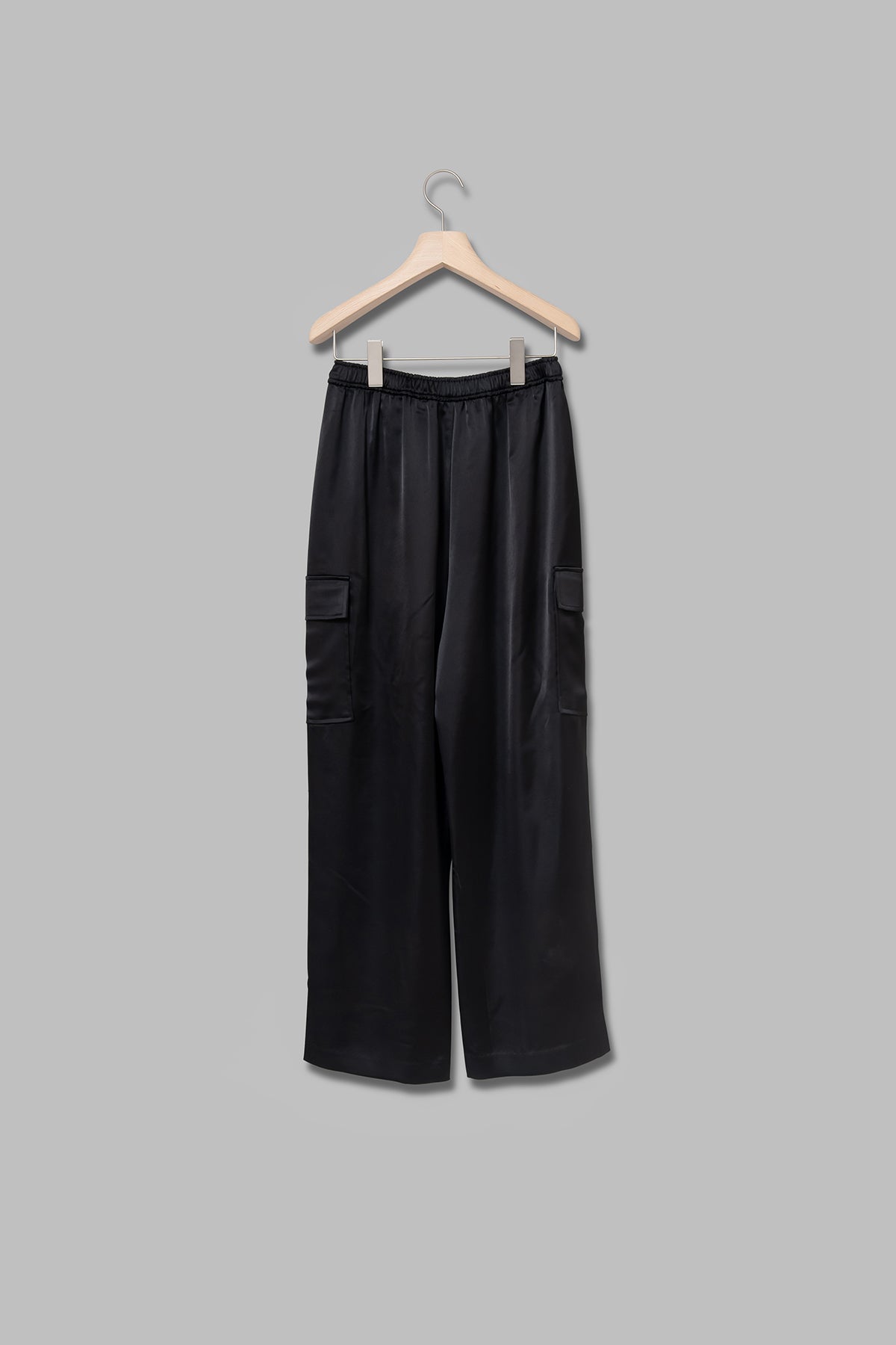 光沢感のあるサテン素材を使用した、大人仕様のカーゴパンツ