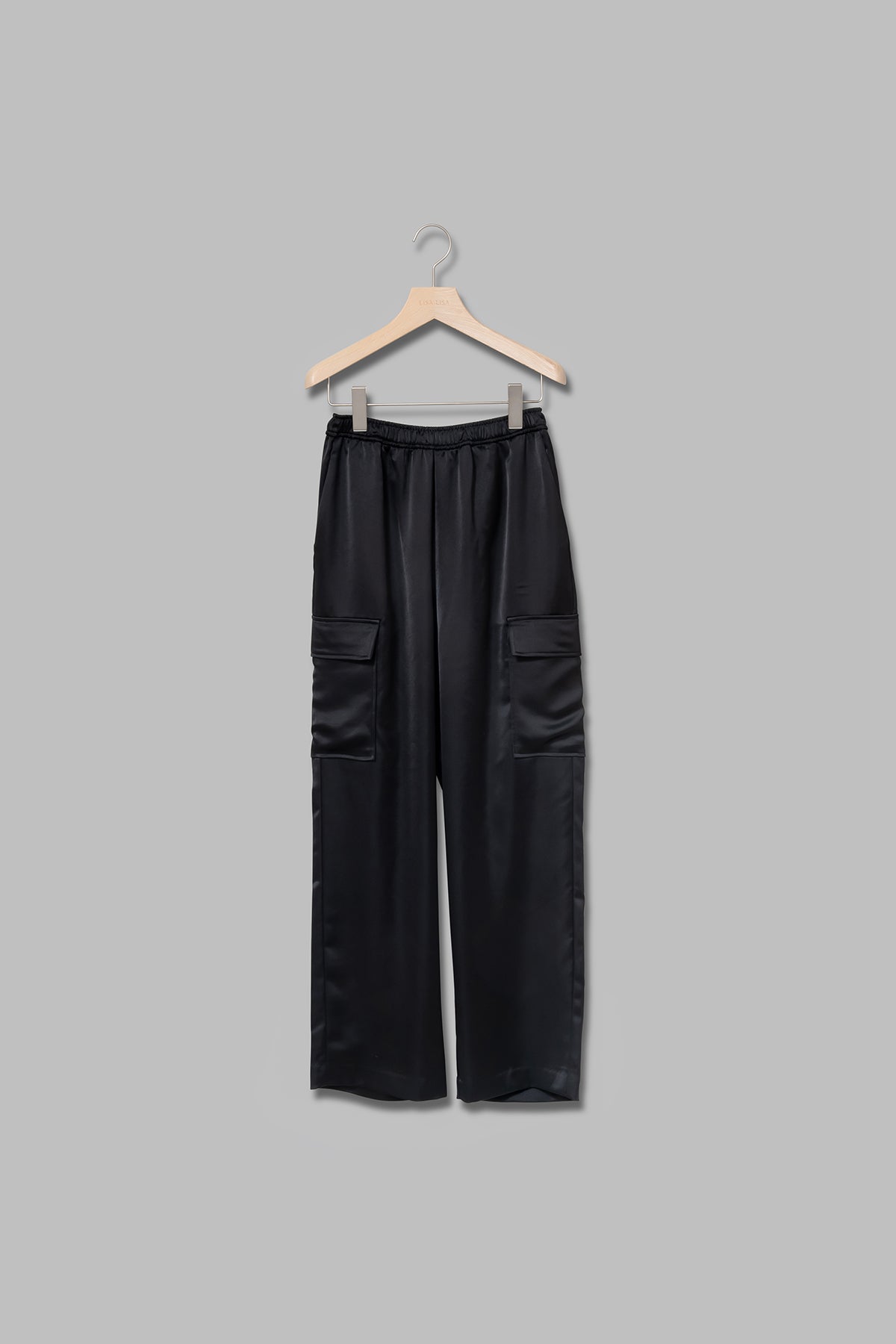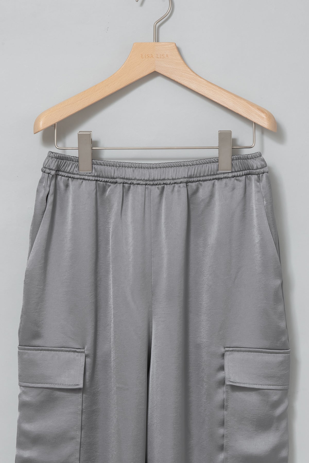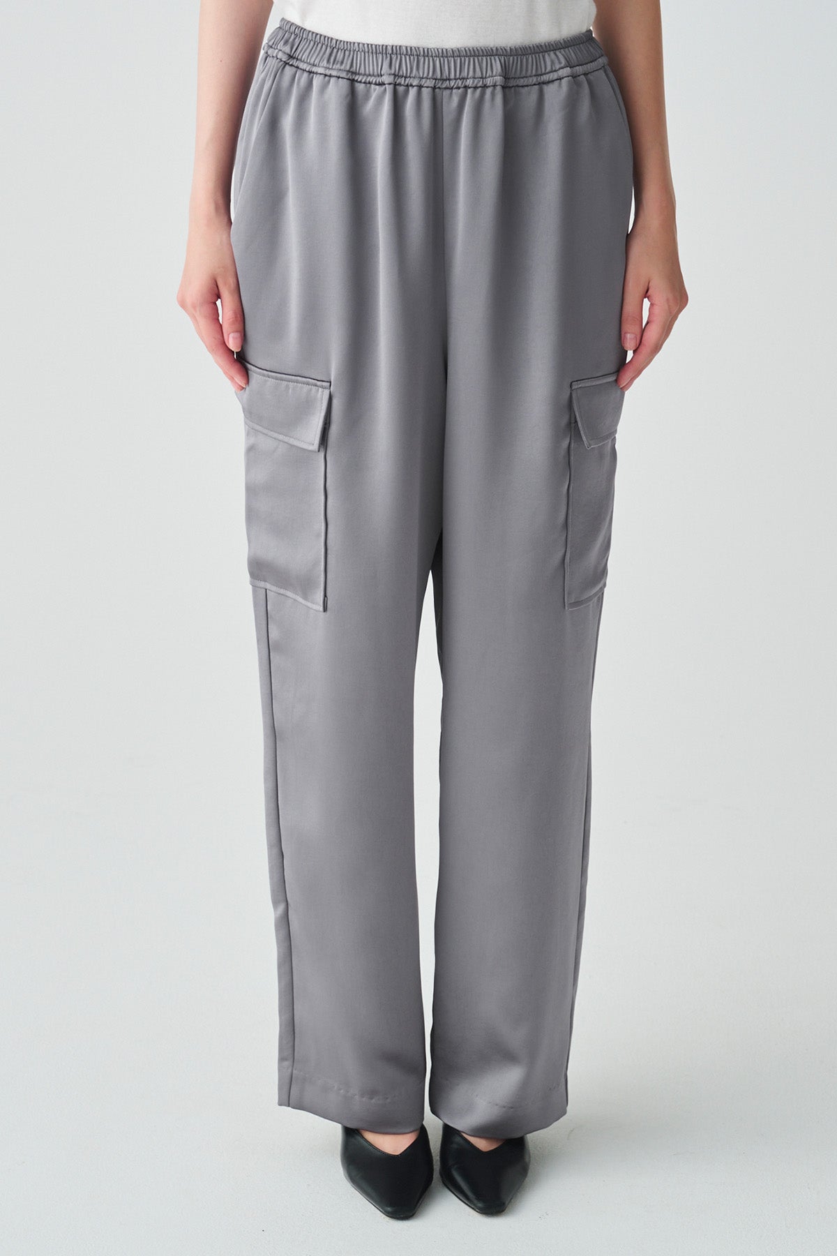 光沢感のあるサテン素材を使用した、大人仕様のカーゴパンツ