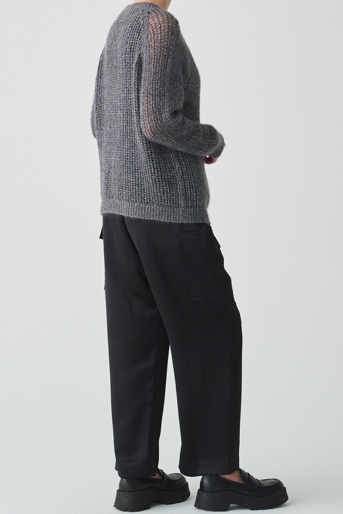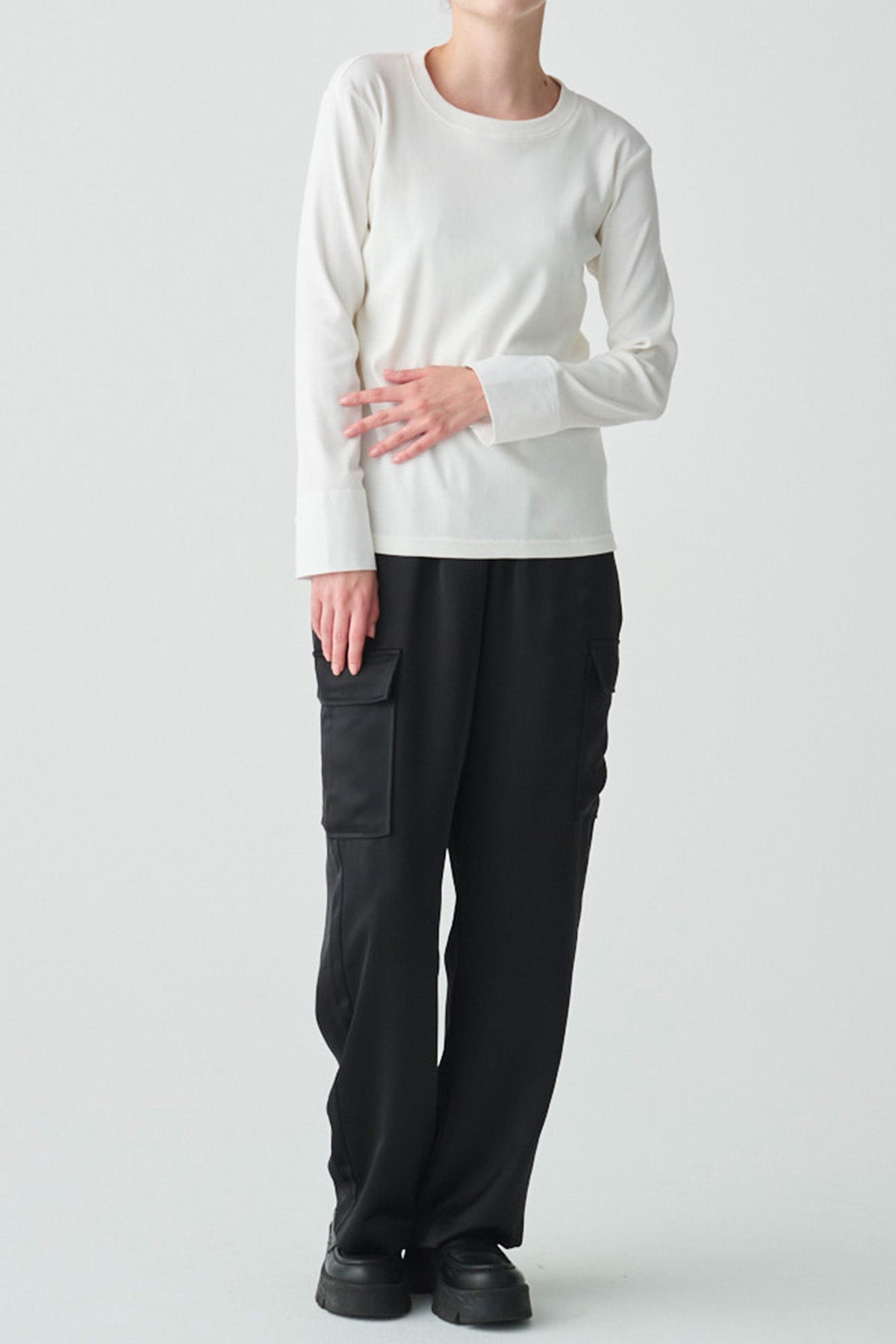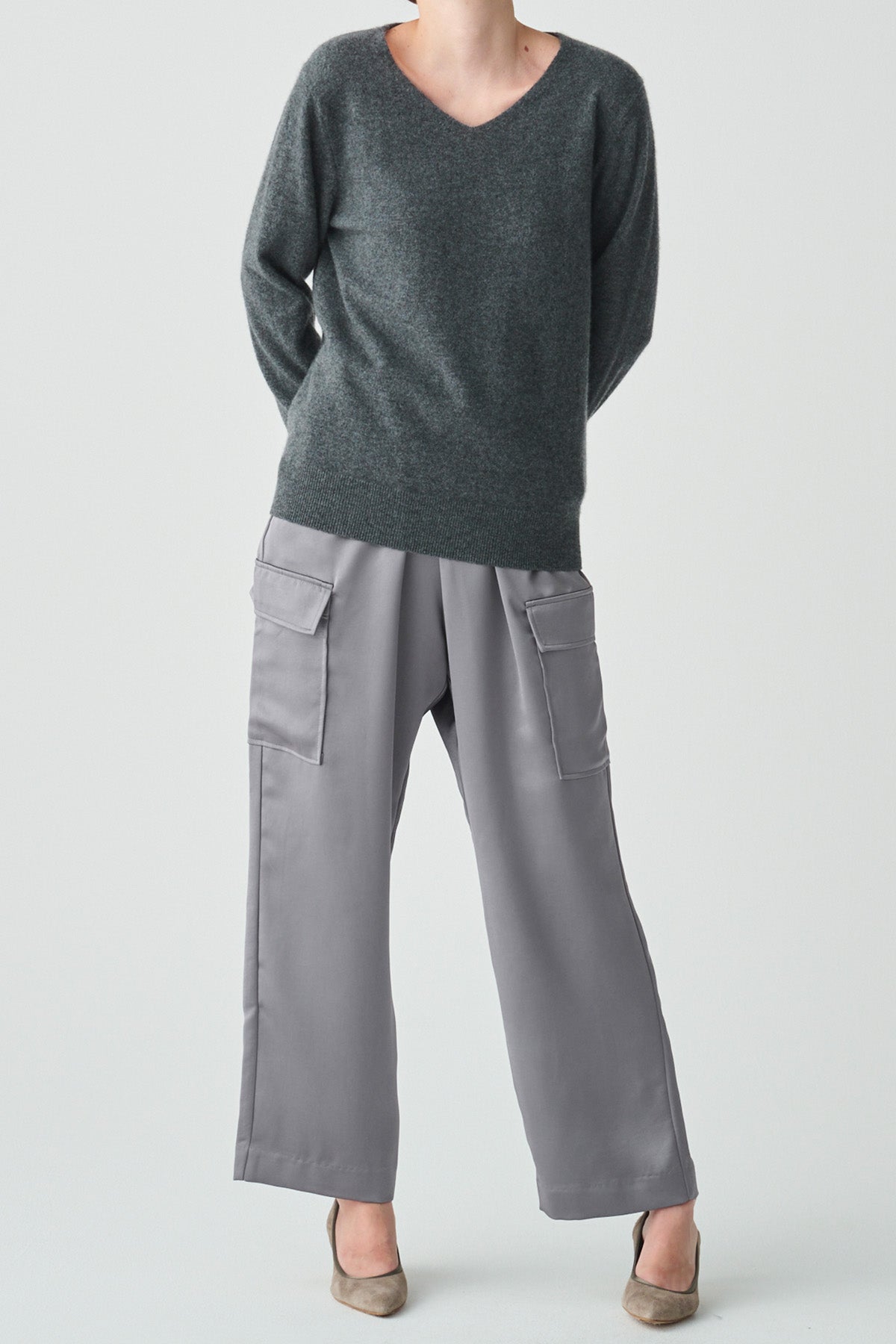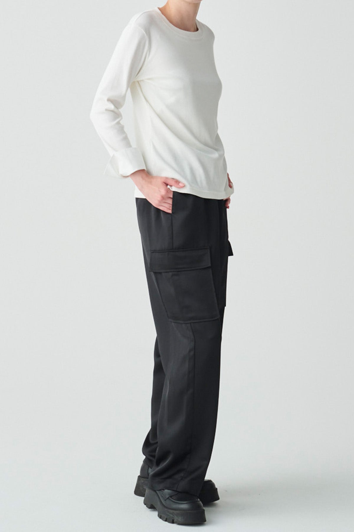 光沢感のあるサテン素材を使用した、大人仕様のカーゴパンツ