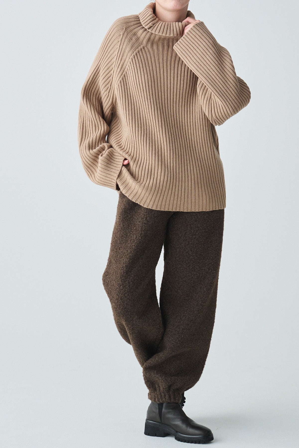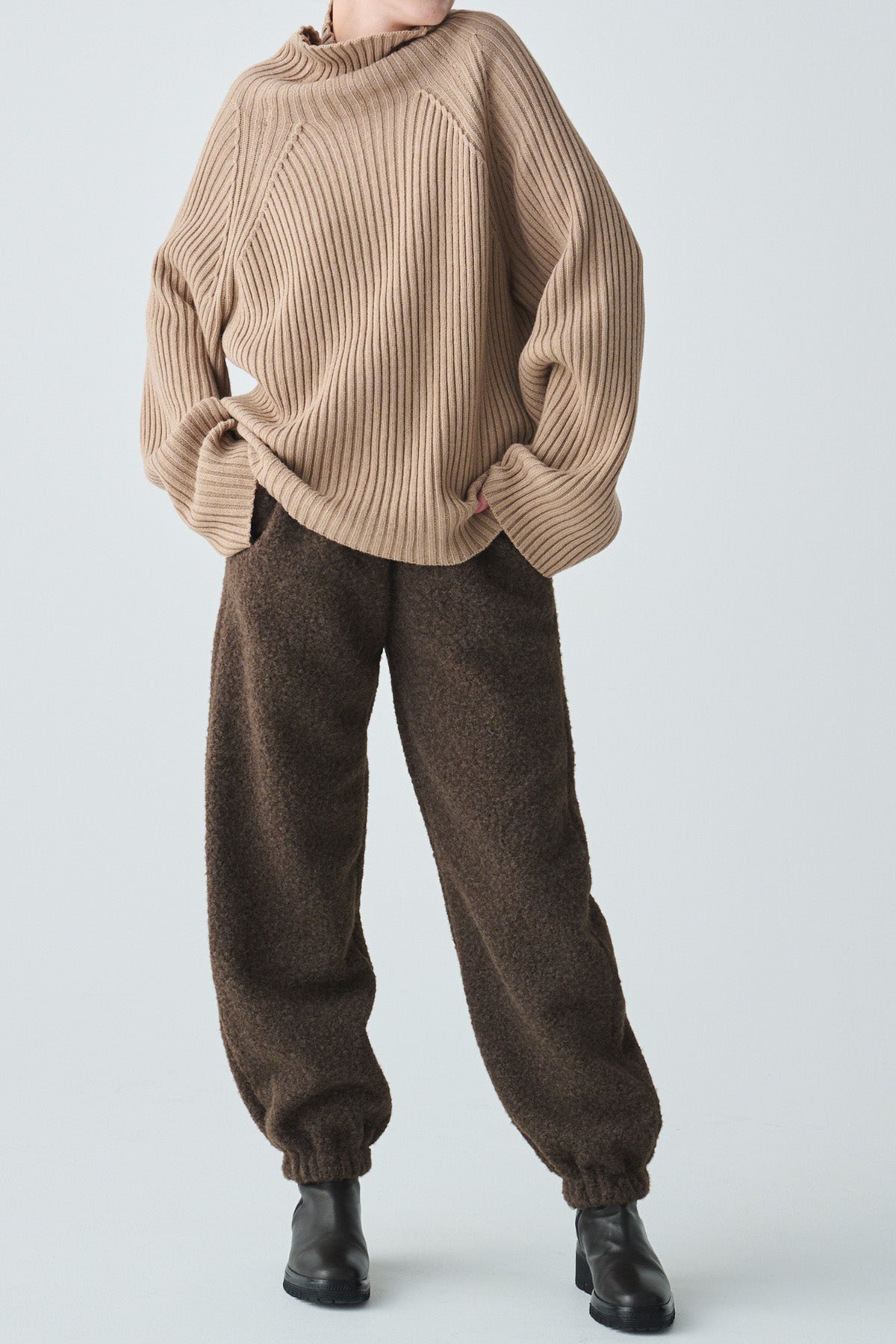 ふんわりとしたシープボアの風合いが魅力のジョガーパンツ