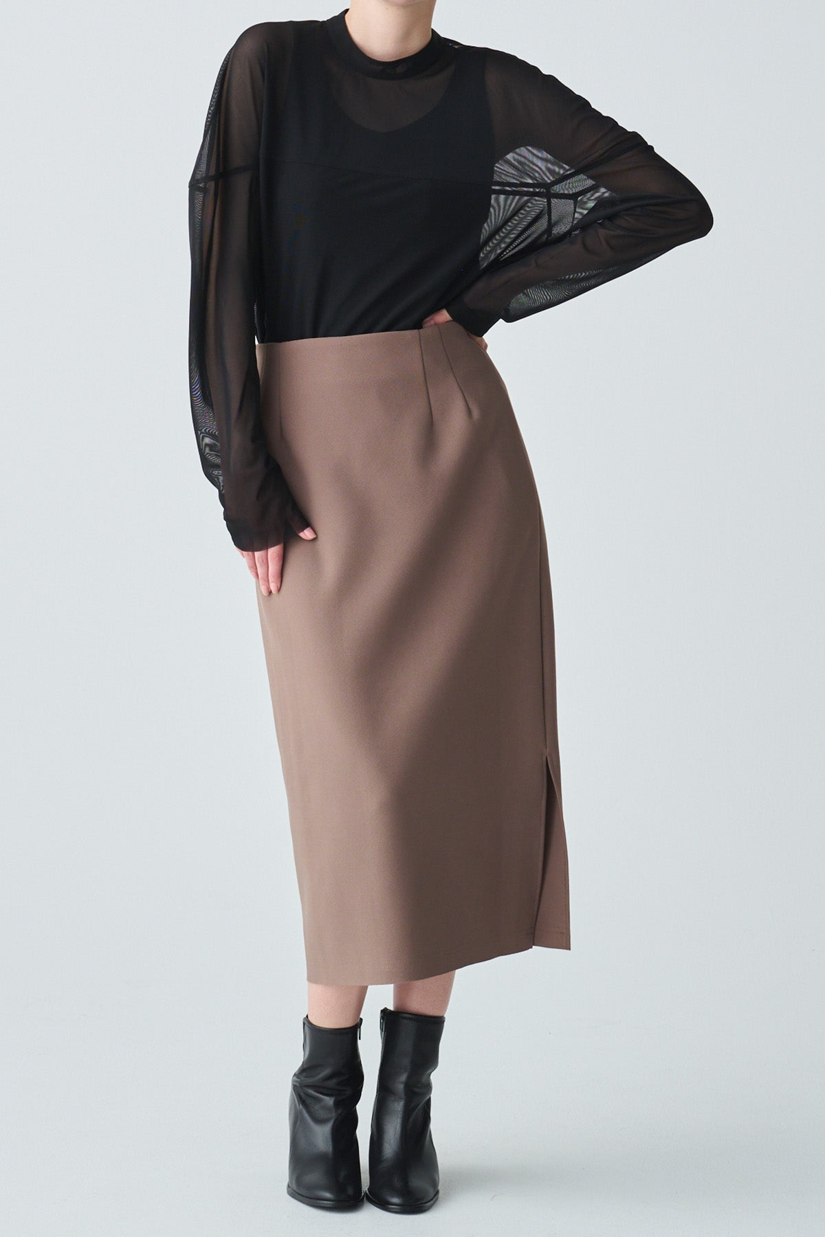 シンプルなストレートに、さりげないサイドスリットをプラスした品な一枚
