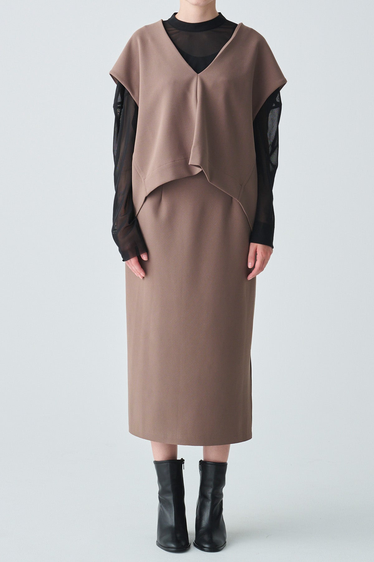 単品ではもちろん【Vネックレイヤータックデザインベスト】とのセットアップで、モダンな大人のスタイルを楽にしますオンオフ問わ