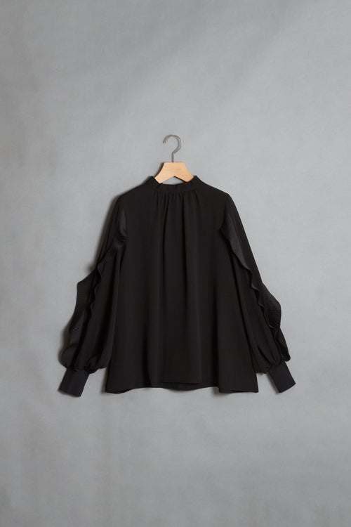 ブラウスやカットソーなどとのレイヤードも楽しめる