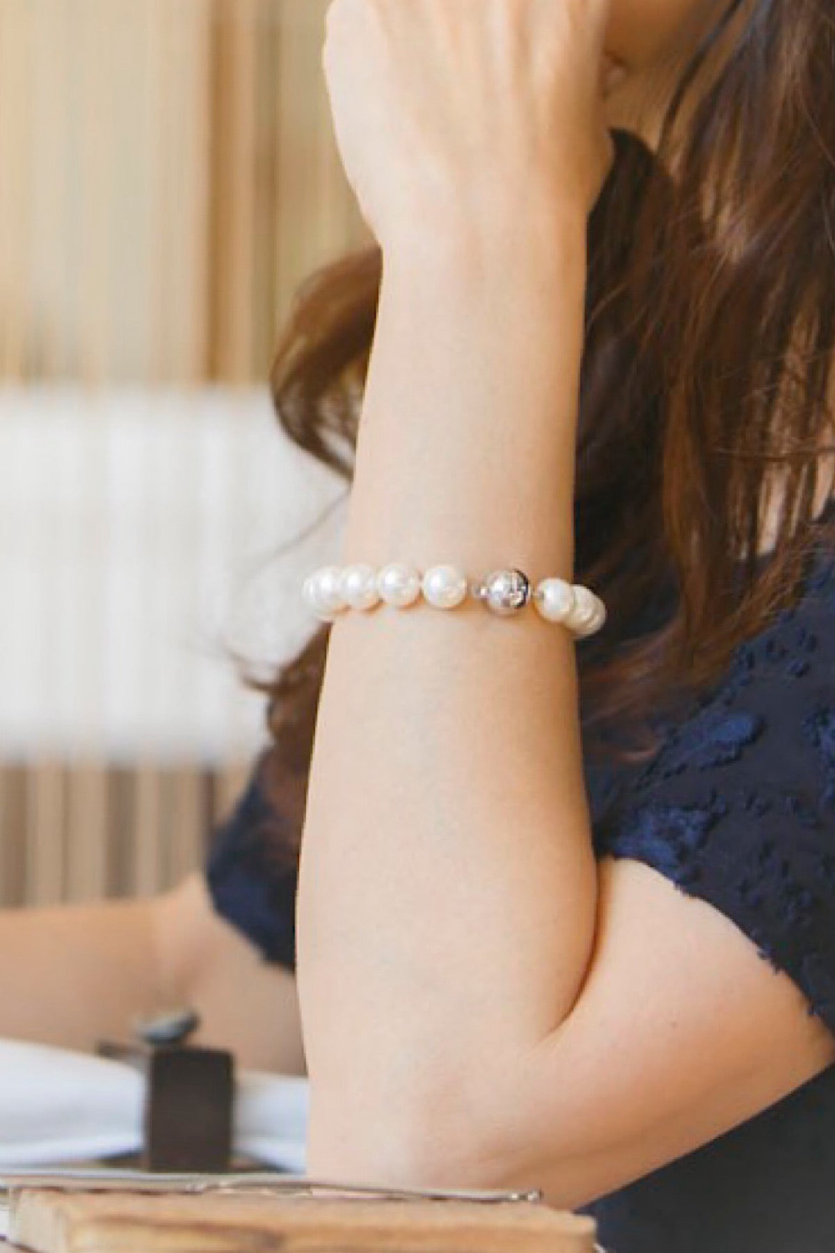 9mm〜11mmの大粒タンスイパールを使用した、手元を華やかに見せるブレスレット