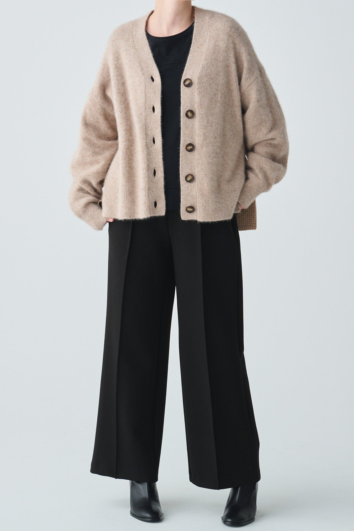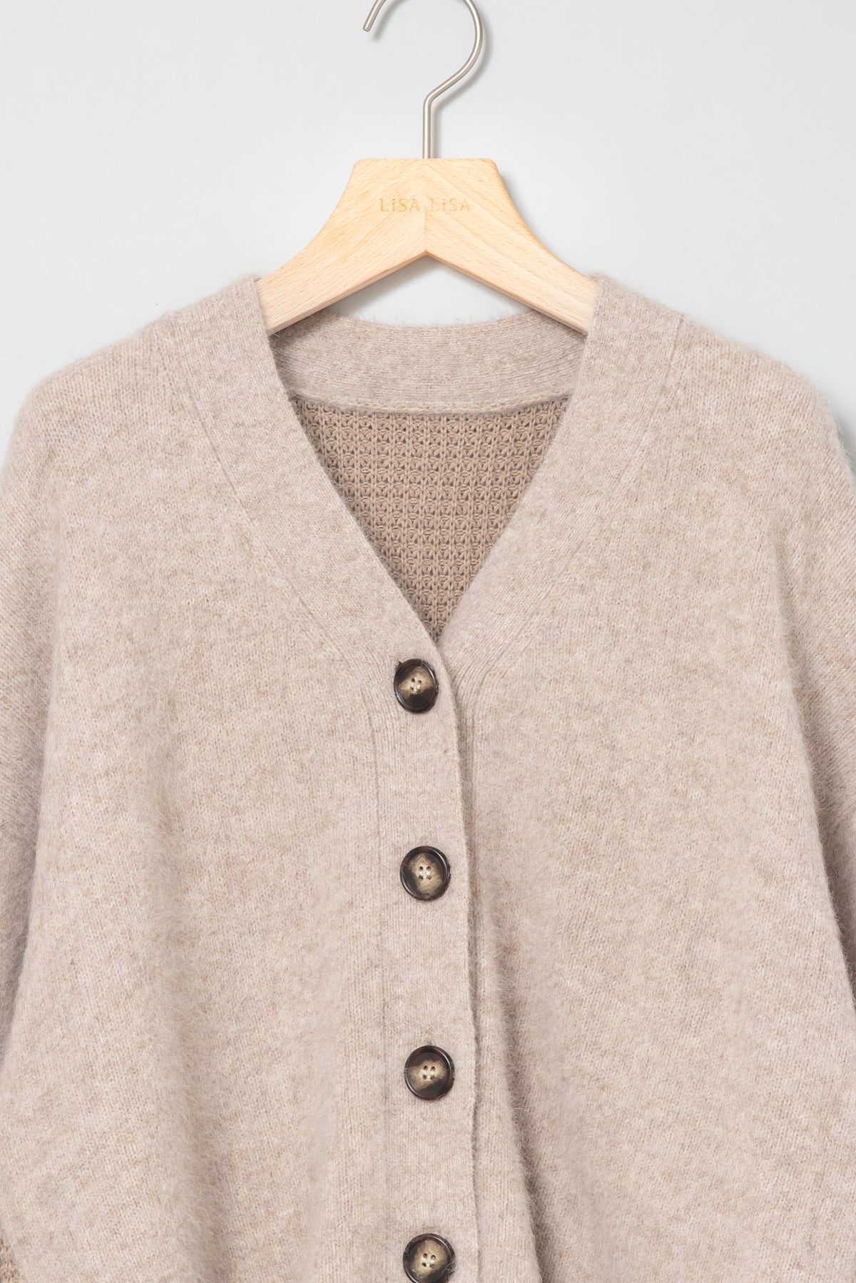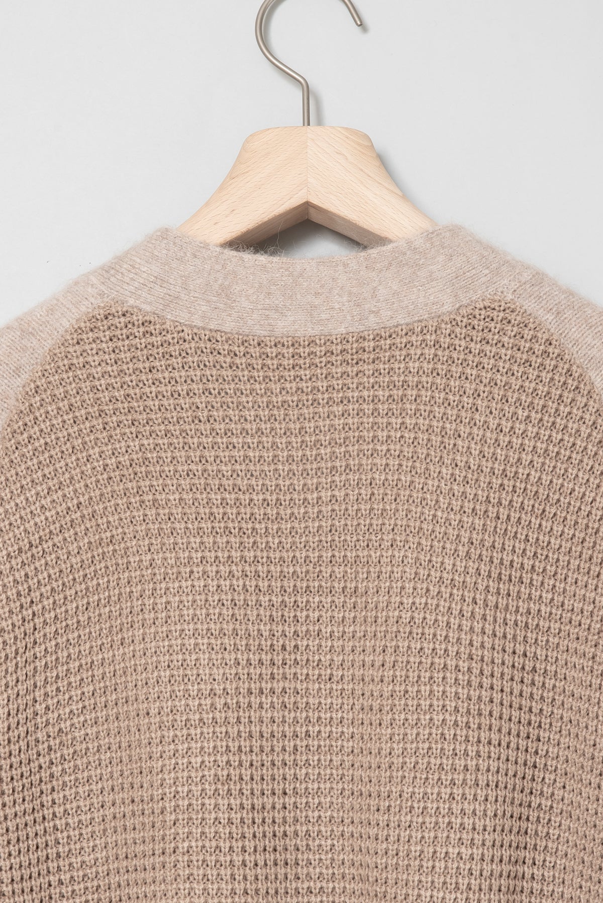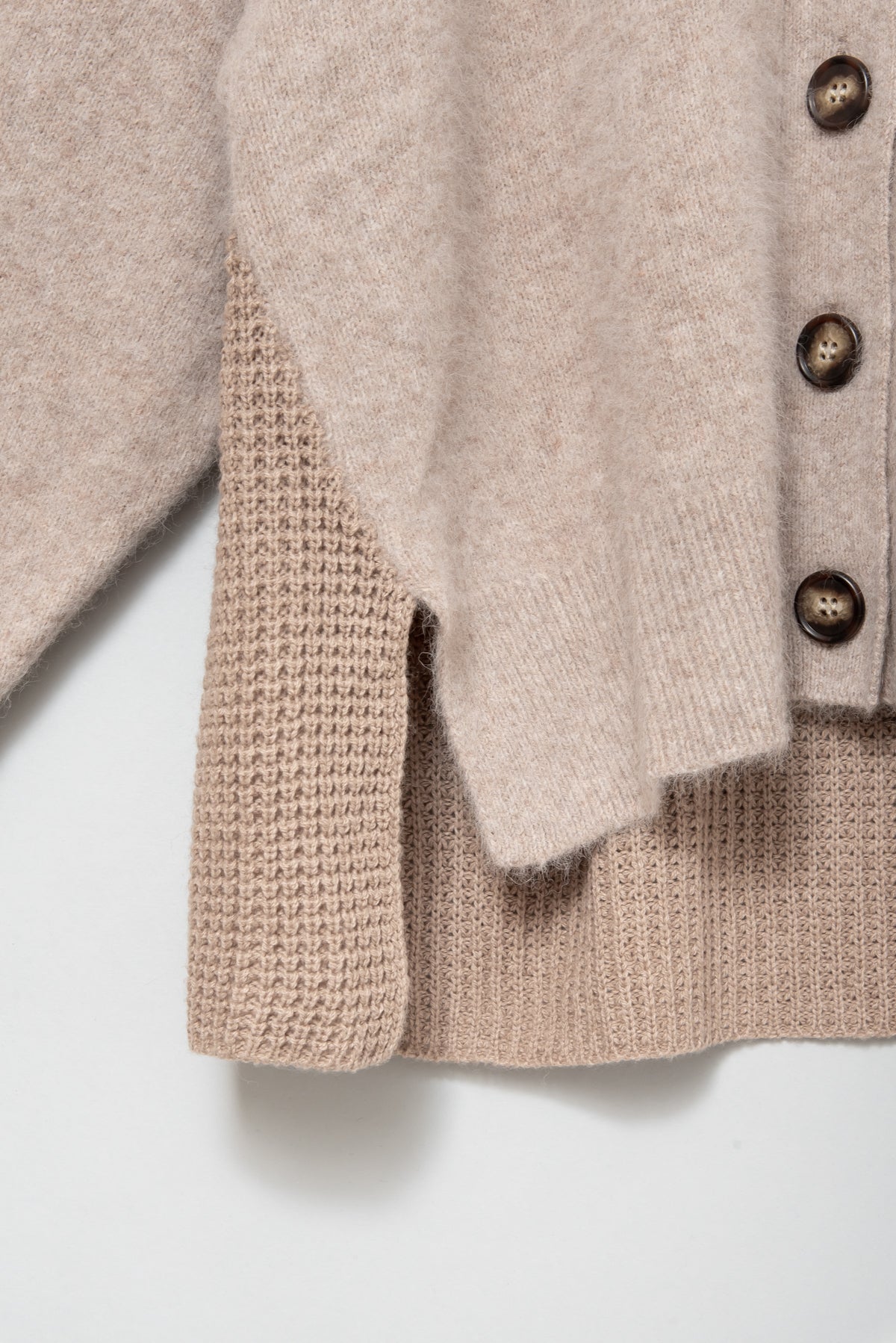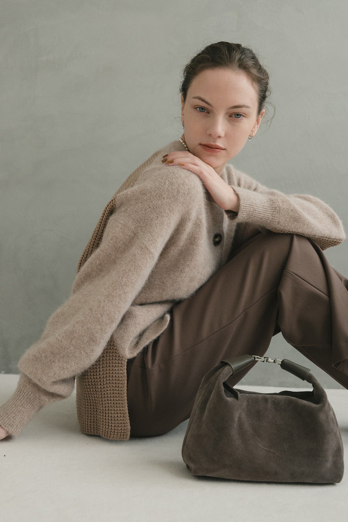 ラクーンとウールをブレンドした上質な糸で編み上げた、軽くて暖かなカーディガン