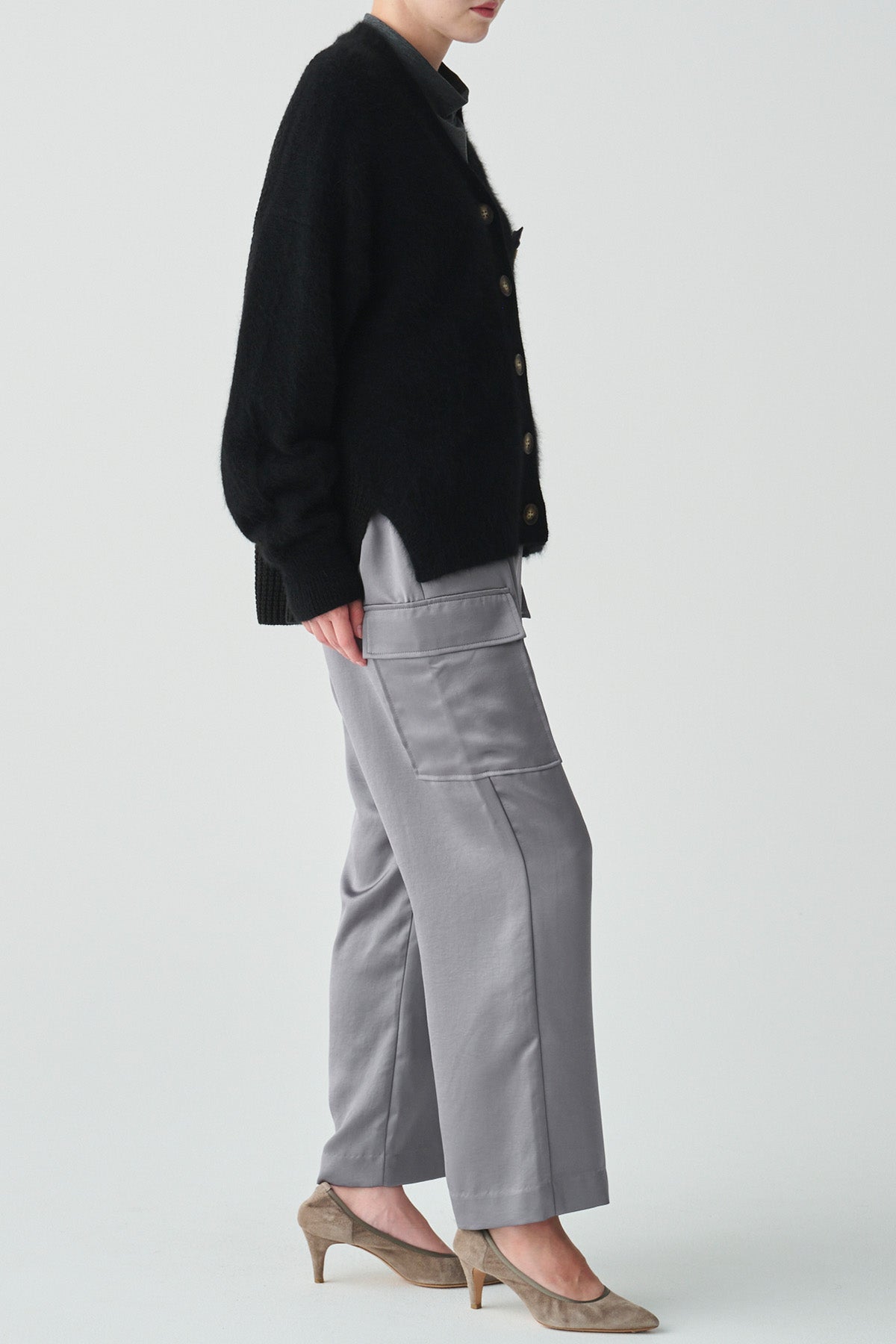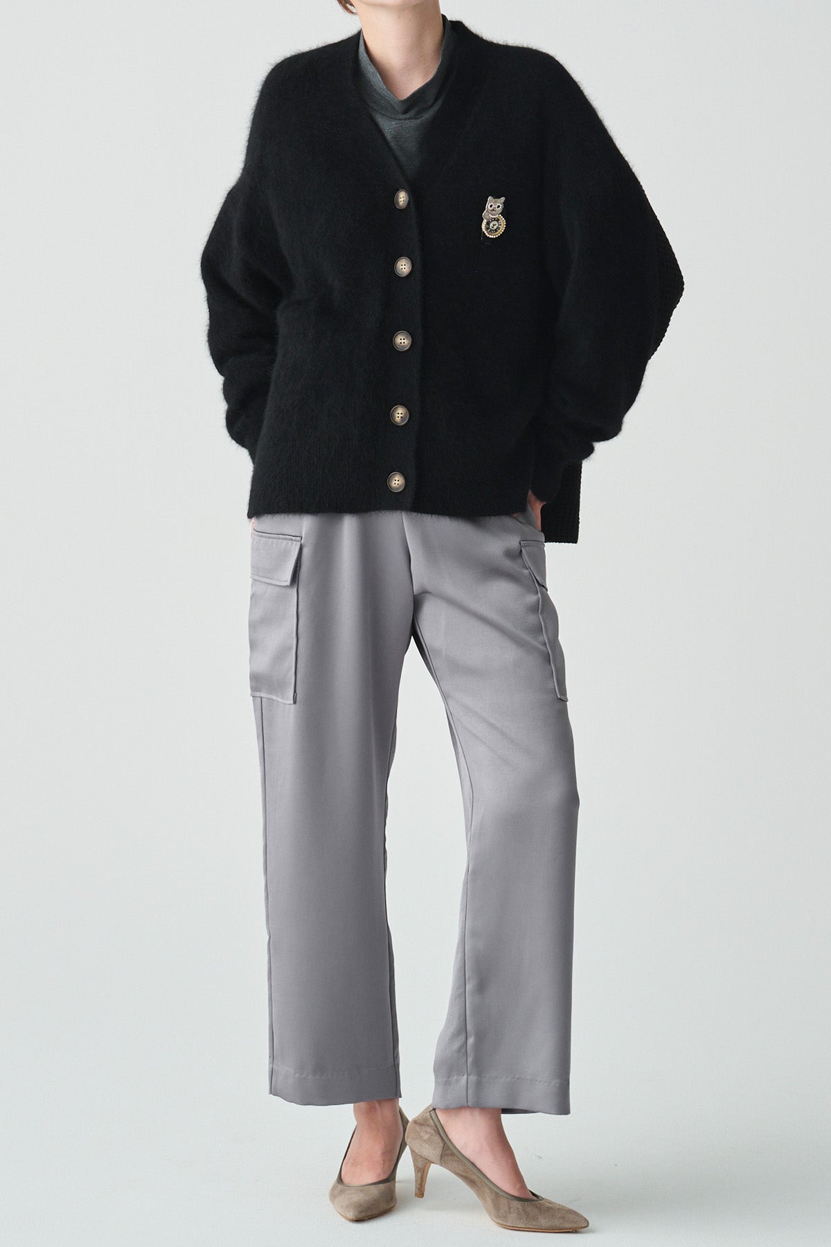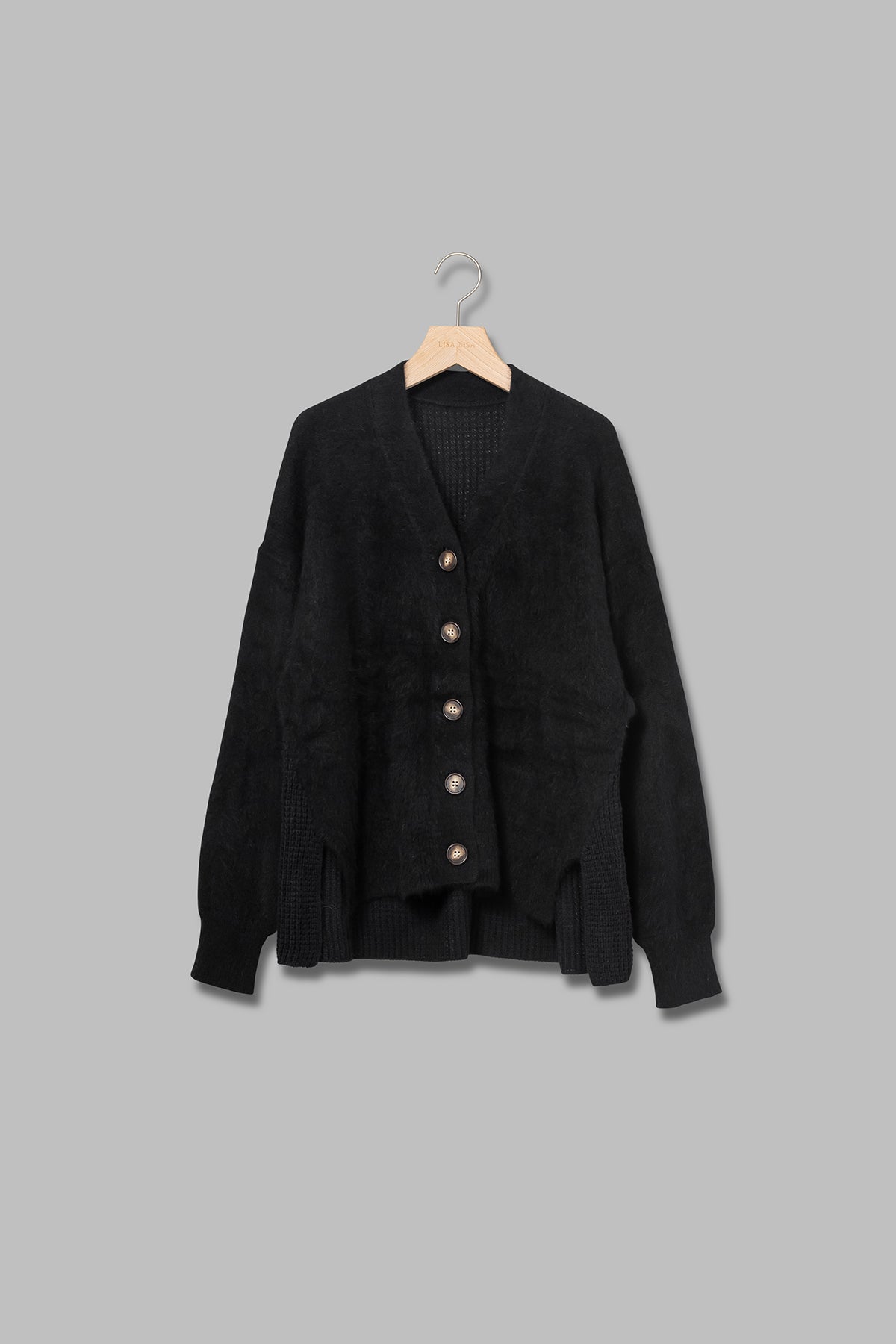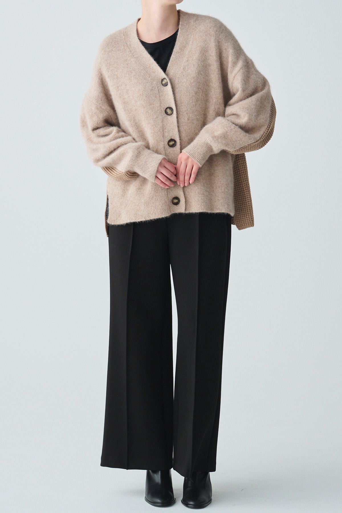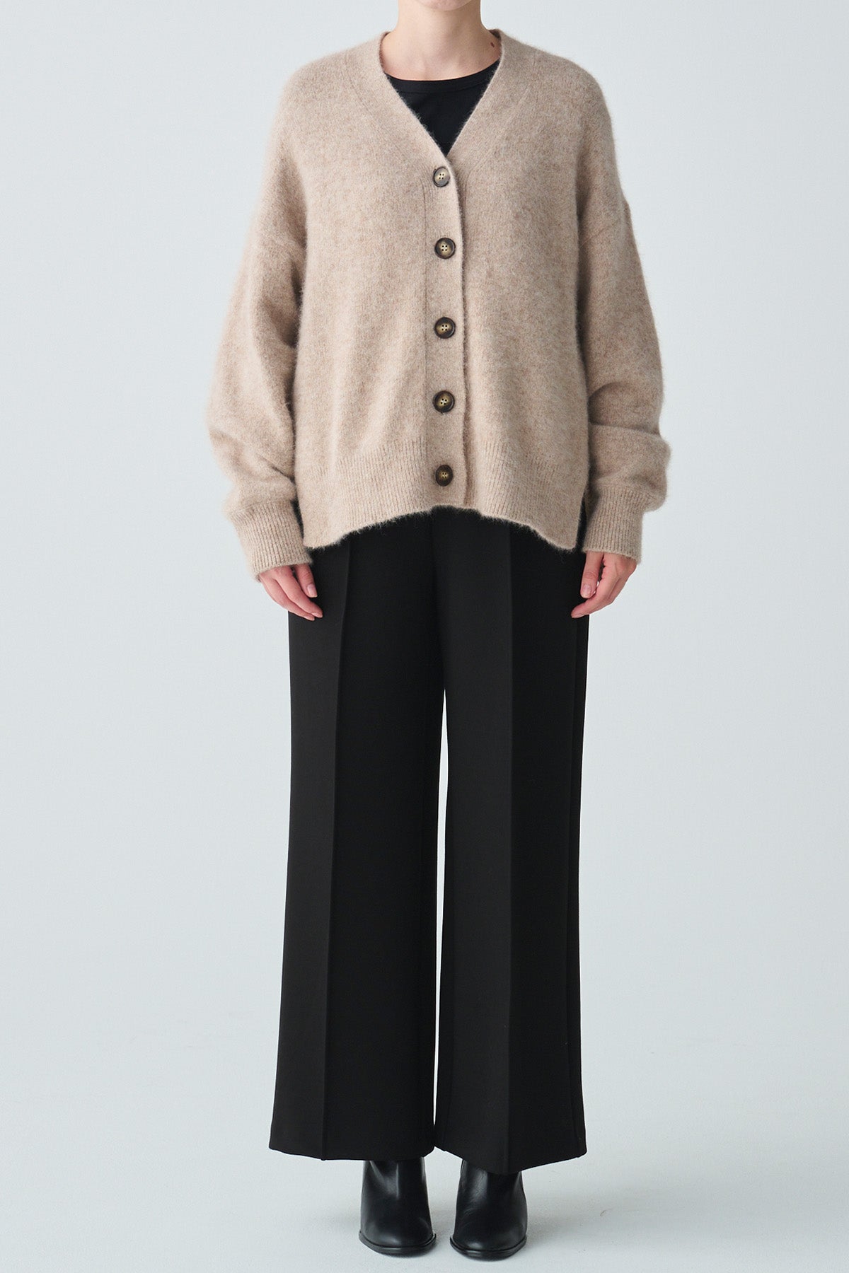 ラクーンとウールをブレンドした上質な糸で編み上げた、軽くて暖かなカーディガン