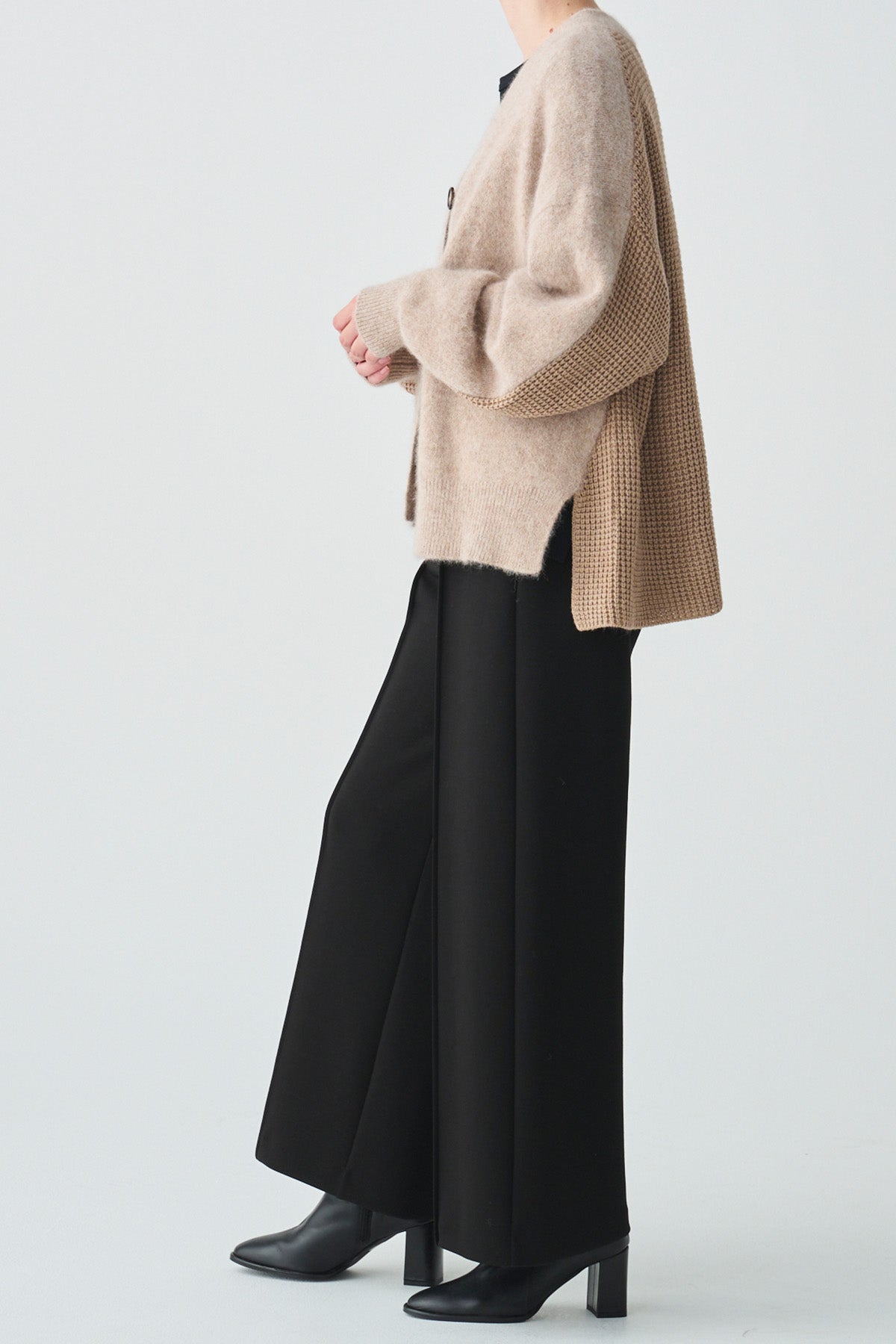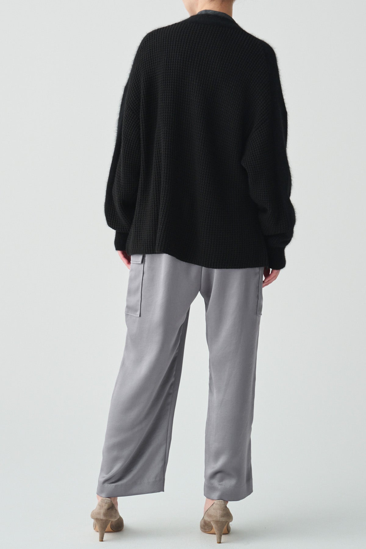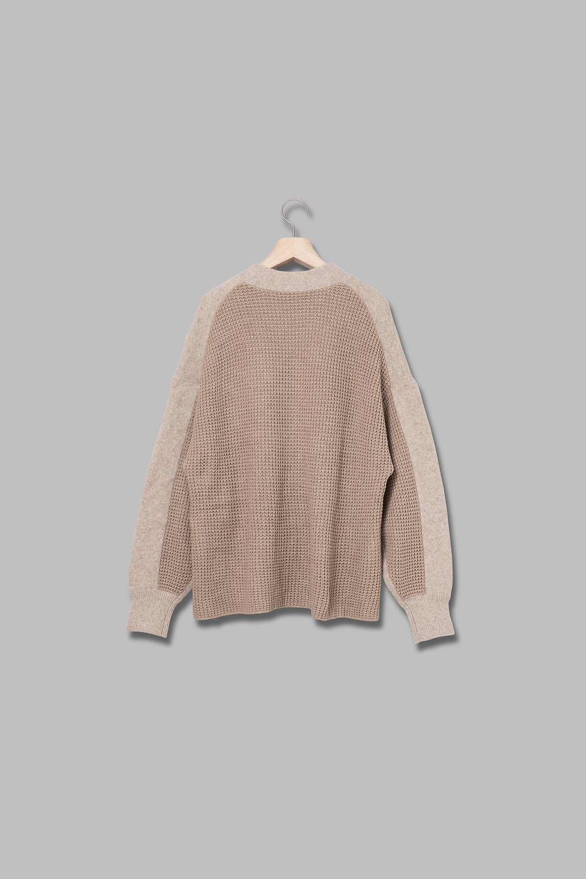 フロントはシンプルに、バックはワッフル編みで切り替え、後ろ姿に立体感を演出しました